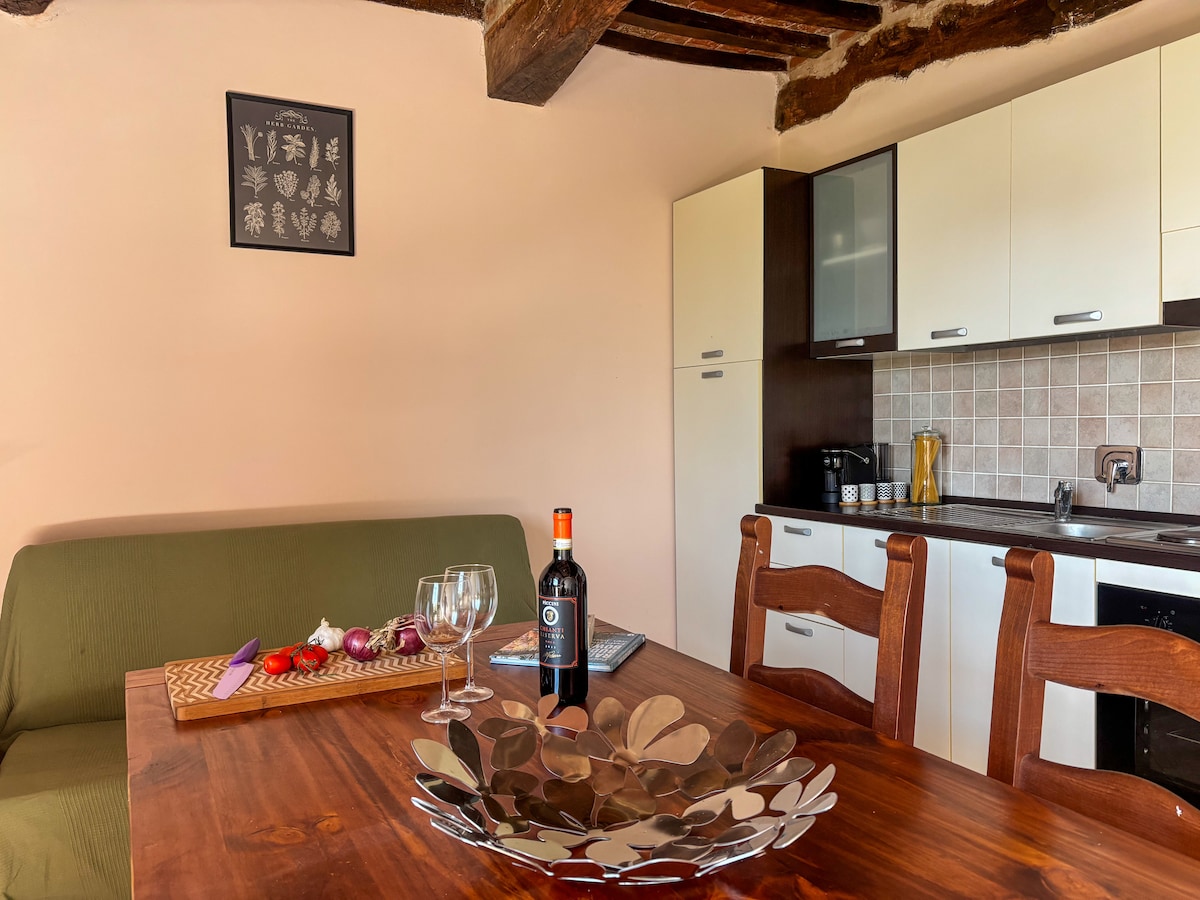 característico apartamento estudio en una terraza propiedad de los techos de 1600 con vigas de madera y terracota, suelos de parqué y muebles típicos de la tradición toscana. Cocina equipada y equipada con todo lo que necesitas para desayunar y cocinar. Se ubica en el primer nivel, con cómodo acceso desde Via del Giardino. zona tranquila y en el centro histórico, a 150 metros del estacionamiento gratuito de Piazzale del Mercato