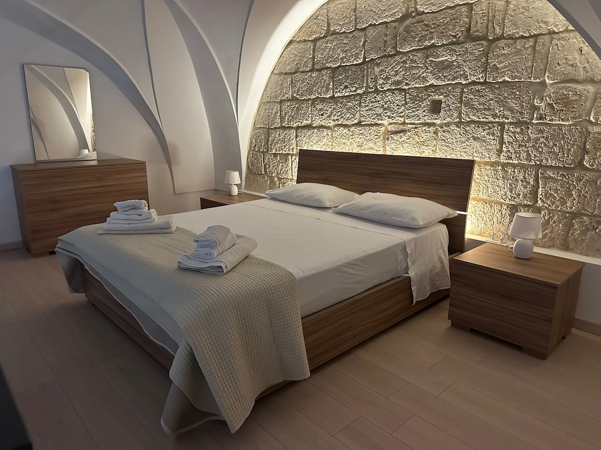 El gran apartamento renovado está a solo 150 metros de la plaza principal en el lado tranquilo, pero cerca de la ciudad histórica. El gran apartamento de 50 m2 en el primer piso tiene un techo alto abovedado de 4 metros de altura con calefacción central en todas partes y aire acondicionado en el dormitorio. Las ventanas de madera originales han sido restauradas con las contraventanas de madera. Hay un suelo de piedra TRANI sólida. Hay colchones y almohadas de alta calidad. Los dos balcones y la luz son una gran ventaja. Casa Palmira está en el mismo edificio.