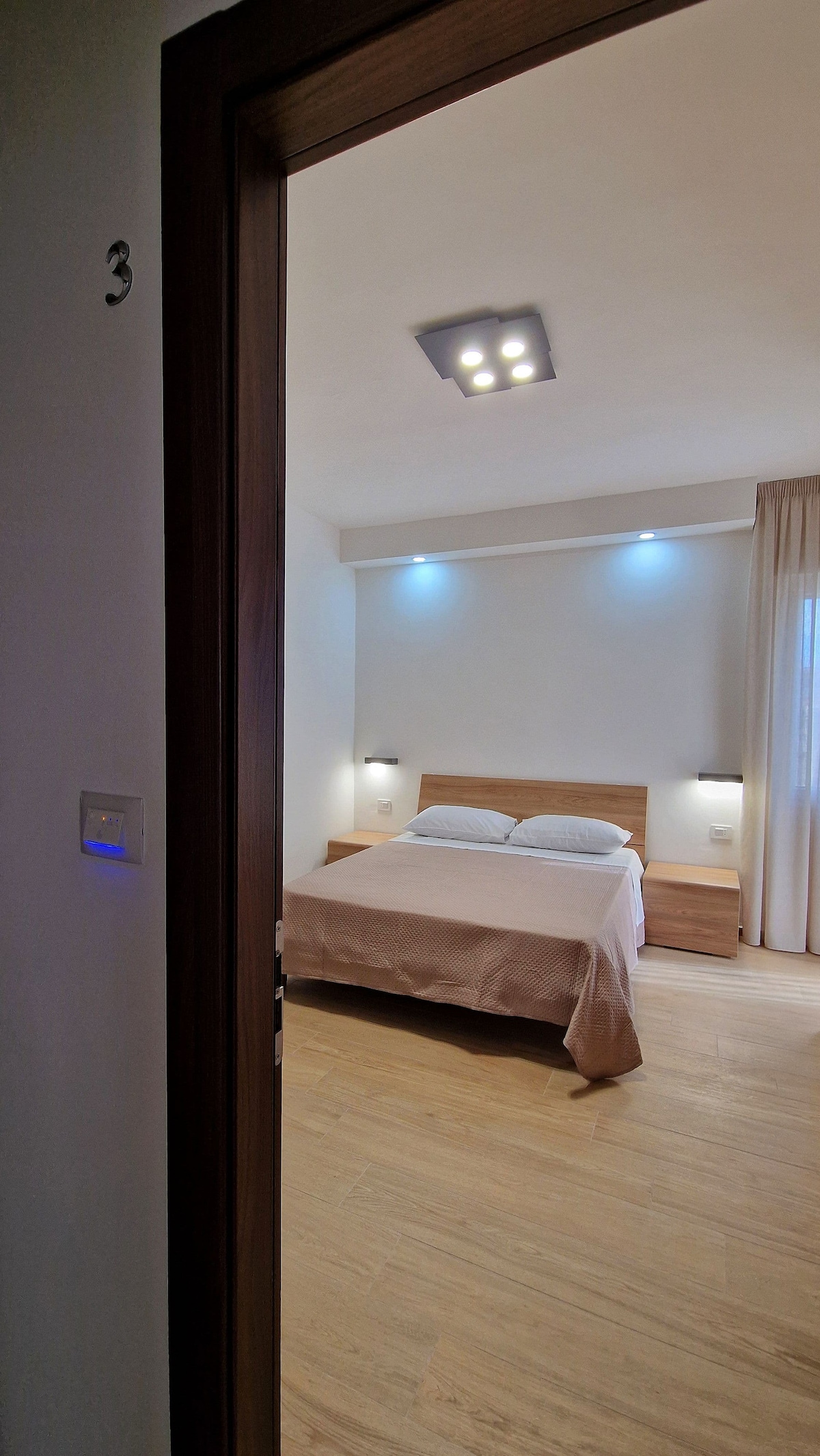 HABITACIÓN 3- Doble La Maison De Teresa se encuentra en el centro vibrante de Gallipoli, a solo 1 km de sus famosas playas. La casa de huéspedes tiene 4 habitaciones y tiene capacidad para un total de 10 personas; está rodeada de tiendas, supermercados, farmacias, etc. Cada habitación está equipada con toallas y sábanas, TV, WiFi, aire acondicionado y escritorio. Algunos también tienen un hermoso balcón. ¡Estaremos encantados de recibirte con una sonrisa para unas vacaciones maravillosas en la Perla del Mar Jónico...!