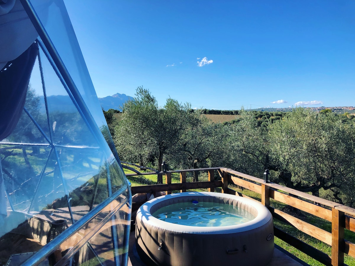 Esta lujosa yurta, con su propia bañera de hidromasaje privada y chimenea exterior, se encuentra en un tranquilo olivar, con vistas panorámicas a la montaña Majella. Forma parte de una granja de olivos orgánicos, a treinta minutos del aeropuerto de Pescara. Hay magníficos parques nacionales cerca y los restaurantes locales también son excelentes. Lamentablemente, no podemos alojar mascotas ni niños menores de 12 años y las modificaciones de tu reserva solo se aceptan con siete días de antelación.