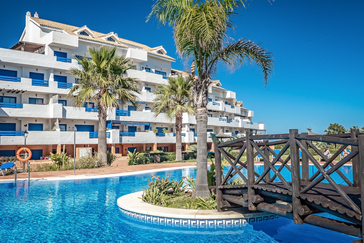 Apartamento en resort en la playa de Marina La Duquesa con vistas al mar