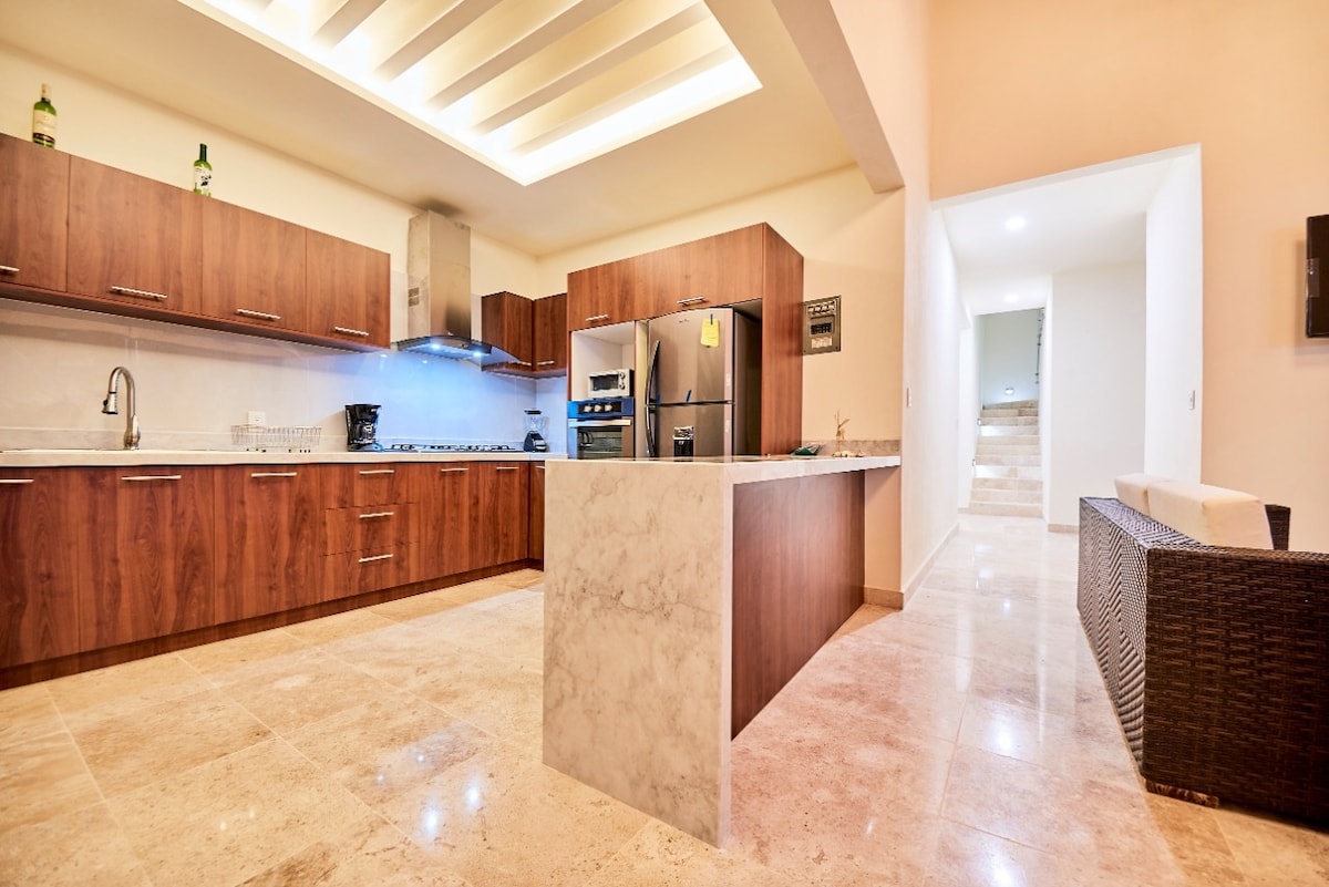 Casa de 3 niveles: playa a 5 minutos, piscina, palapa y limpieza diaria