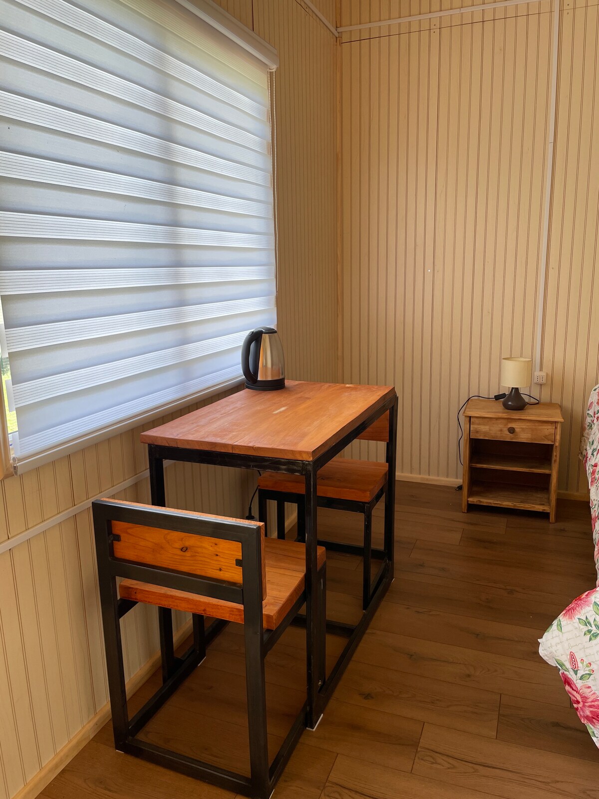 Funcionamos bajo el concepto de contact less y self chkin. La cabaña se entrega con ropa de cama, sabanas de baño, amenities, papel higiénico y leña. Hay vajilla y utensilios de cocina para 8 personas. Se cuenta con terraza, kayak para paseos en la bahía, parrillas para asado y un hot tub. La parrilla se debe pagar por cada uso. El Hot Tub se debe pagar por cada uso de 2 horas y no es de uso exclusivo ya que otros pasajeros pueden usarlo en el dia.