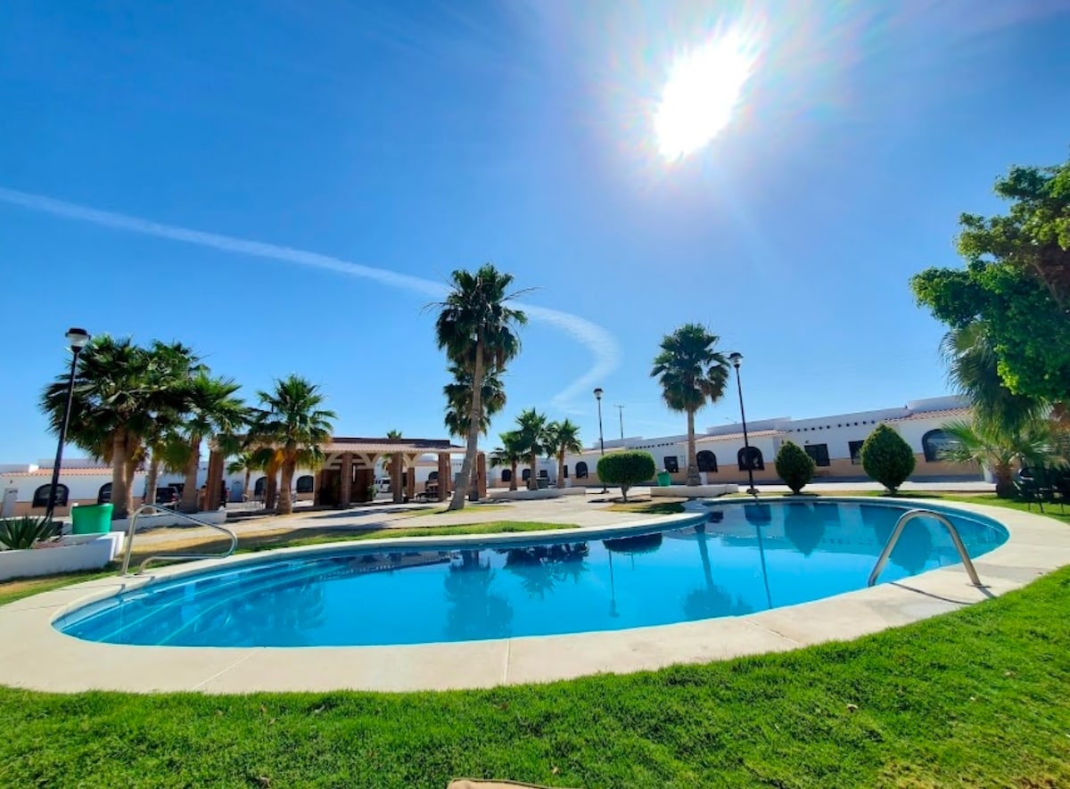 Tu retiro en la playa te espera. Apartamento súper lindo de 2 dormitorios, 2 baños. Pasa tus días relajándote en tu patio privado, cerrado y cubierto con impresionantes vistas del desierto de Sonora en la parte trasera... o cruza la calle hacia hermosas playas de arena (a menos de 40 yardas de distancia) para sumergirte en el mar, pescar, hacer kayak, surf de remo o descansar con un buen libro, y sí, tenemos kayaks, tablas de surf de remo, libros, juguetes de playa y más para tu disfrute. En el sitio temazcal (sauna) también.