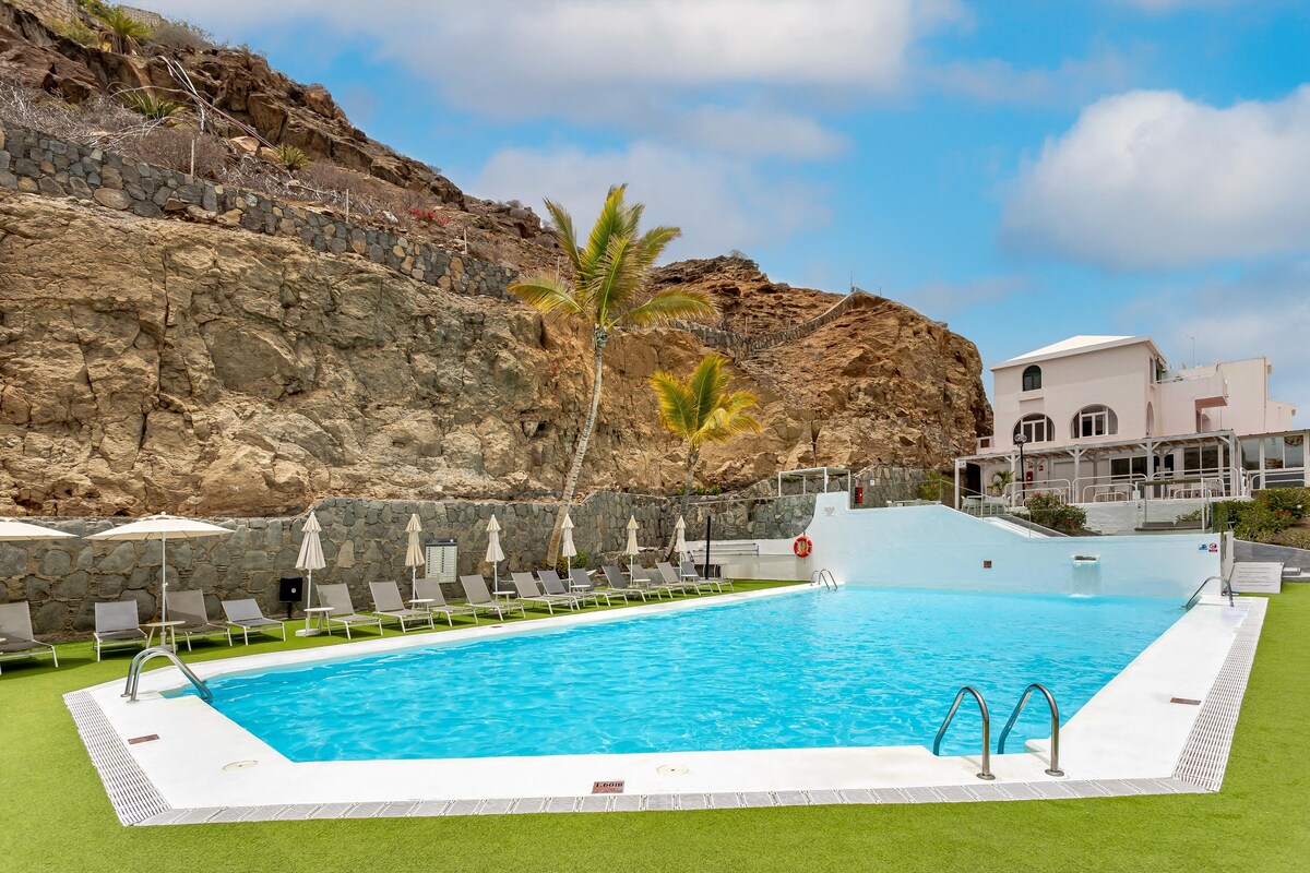 COSY BEACH APARTMENT SOUTH GRAN CANARIA Spanish, english, french spoken. Apartamento de playa situado en el sur de la isla de Gran Canaria, en la playa de Puerto Rico, en un pequeño complejo familiar, tranquilo, ideal para el descanso y a 15 minutos caminando de la playa. Está perfectamente amueblado y equipado con todos los electrodomésticos que puedas tener en casa, con wifi y TV inteligente. Renovación integral en el 2021. Dispone de aire acondicionado en toda la casa.