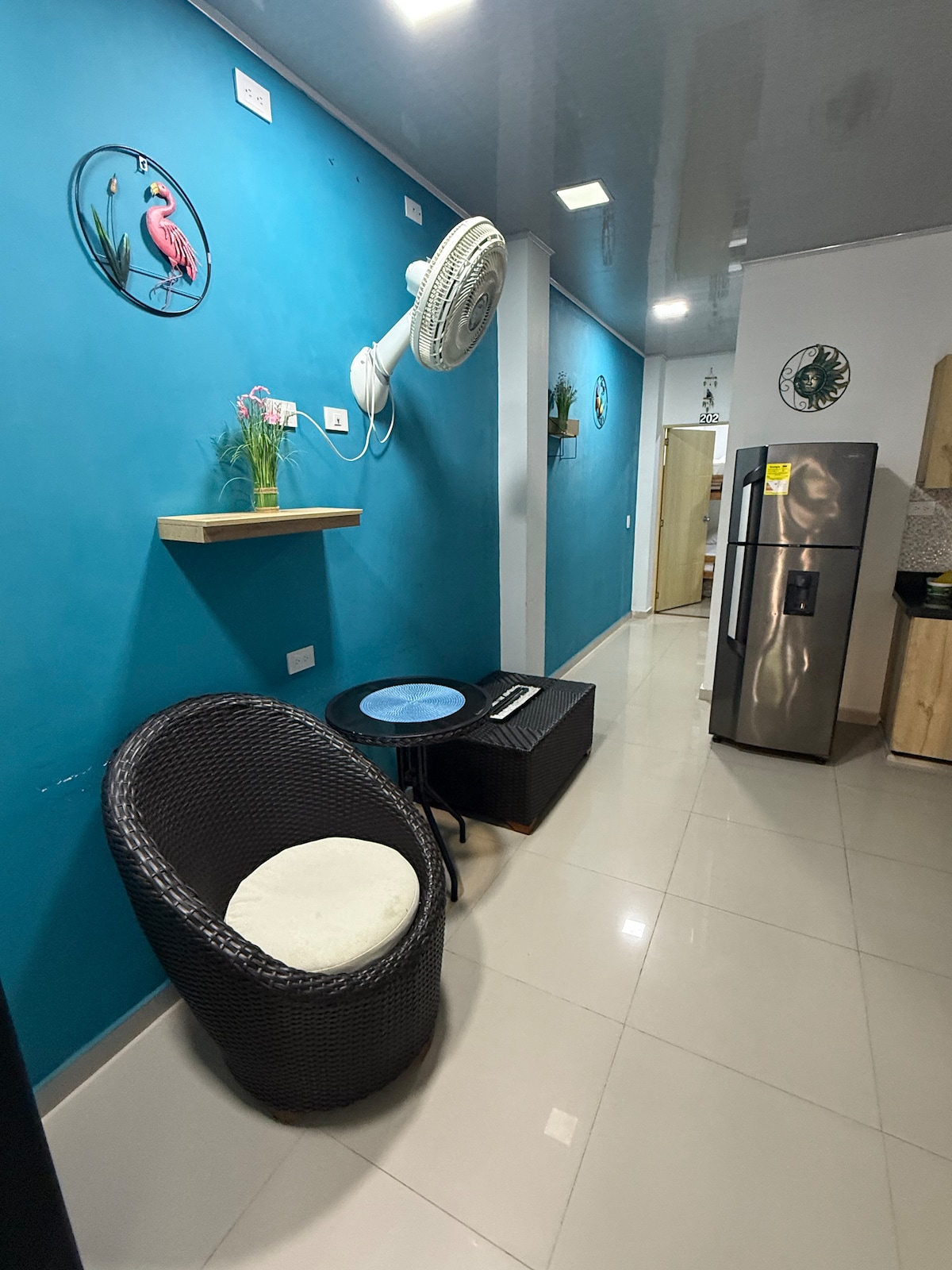 Nuestro apartamento es una excelente opción de alojamiento cuando visites Doradal, nos encontramos a tan solo 1 kilómetro del Parque Temático Hacienda Nápoles y a 19 kilómetros del Cañón del Río Claro, a 5 minutos del parque principal de Doradal, donde encontrarás variedad de locales comerciales, restaurantes y almacenes. Nuestro apartamento está ubicado en el piso 2 con acceso de escaleras, con 2 habitaciones con aire acondicionado, ventilador, 2 baños, wifi, comedor, cocina completa, nevera.