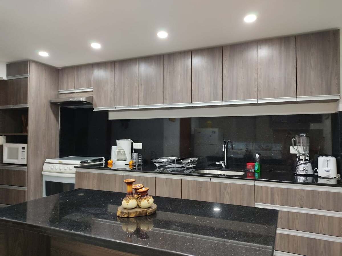 Departamento confortable, completamente equipado en donde no cortan la energía eléctrica.. A minutos de: centro histórico, centros comerciales, parques, centros médicos, restaurantes, etc. Contamos con: portón eléctrico, acceso electrónico al edificio, ascensores, parqueadero para su vehículo y servicio de seguridad 24 horas. Check-in 14:00 Check-out 11:00 Se puede coordinar otros horarios, acorde a disponibilidad.