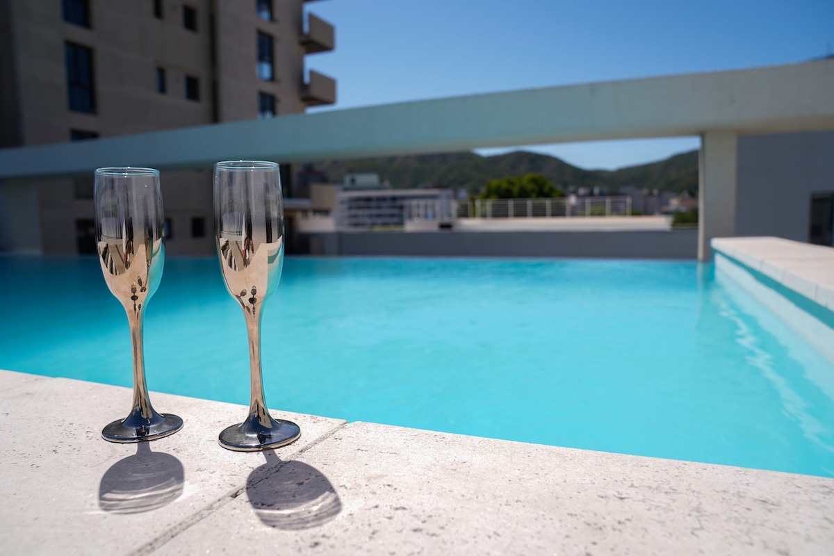 Moderno luminoso y cómodo ! Cuenta con todos los servicios: aire acondicionado, Wi-Fi, Smart TV, cocina equipada, snacks ,café y té de cortesía ,piscina, gym, ropa de cama y toallas incluidas. Cochera con costo adicional. Relajate en el balcón con vista a las sierras y a la ciudad , ideal para disfrutar del amanecer o de una copa al atardecer. La ubicación es excelente: a pocos minutos del centro, del lago San Roque ,de teatros y los principales puntos turísticos