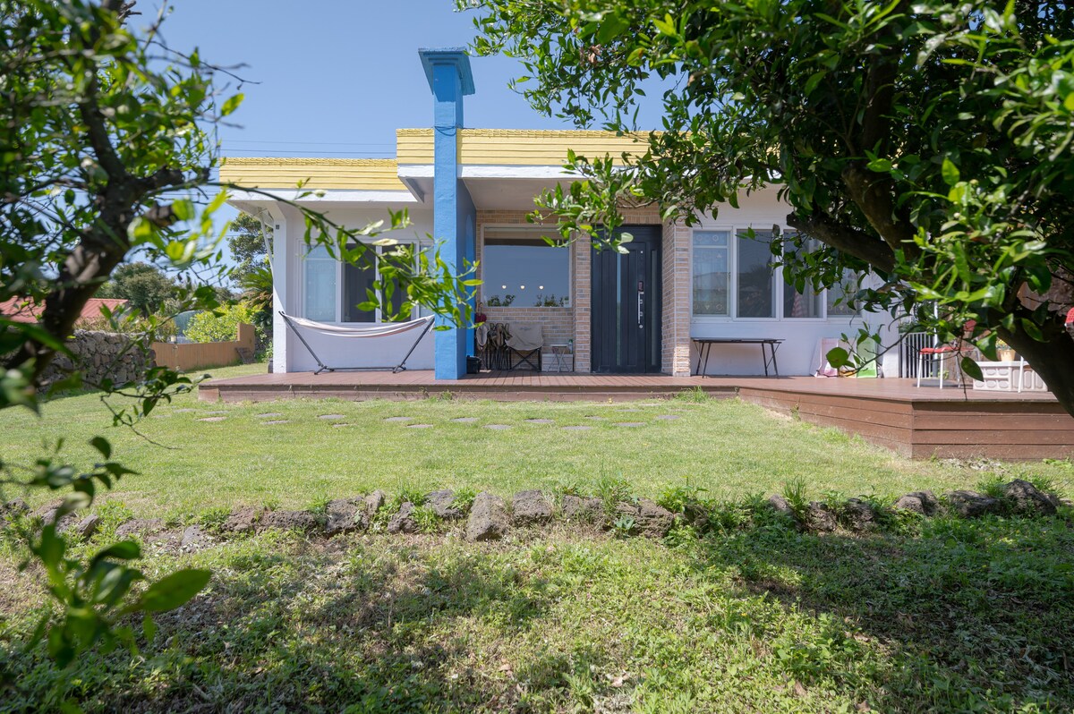 Alojamiento emocional privado de Pyojeon. La casa es de 23 pyeong, y el jardín es de unos 300 pyeong. Baño termal disponible en todas las estaciones. Puedes entrar a partir de 12 años.(Ponte en contacto con nosotros por mensaje de menos de 12 años/hasta 3 personas pueden entrar) [📌El básico está configurado para 2 personas (cama tamaño queen, futón). Si hay 3 personas o 2 personas que duermen por separado, contáctanos para obtener configuraciones️ adicionales. A 3-5 minutos a pie de la playa de Pyoseonhae. (Salt Block Beach a 3 minutos en auto/surf) Comida de bienvenida proporcionada (taza de fideos) - 1 vez (el día de la admisión) (Lo que se proporciona puede variar periódicamente). Cocinar es difícil. (Hay una estufa de inducción de 1 hoyo, pero es posible tener una sopa que no huele a ramen. No puedes cocinar alimentos con olores fuertes como carne a la parrilla y maeuntang) Puedes ir a instalaciones de conveniencia como restaurantes y mercados en las inmediaciones en unos 5 minutos en auto. Atracciones cercanas: La playa de Pyoseon (a 5 minutos a pie/1 minuto en auto), el pico Seongsan Ilchulbong (a 20 minutos), el pueblo folclórico de Jeju (a 3 minutos) y el jardín de hierbas de Jeju (a 6 minutos) están disponibles. También puedes ir a Taerabioreum en 15 minutos.