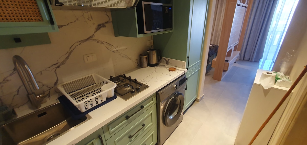 Welcome to our boho beach retreat in La Hacienda for those seeking relaxation & calm. This place has all the amentities you’ll need. La Hacienda has loads of amenities; pools, beachfront cafe, restaurants, kids playground, tennis & padel courts. The beach & kitesurfing is recommended! The newest pool is a minute away! Note on weekdays construction’s ongoing for the newest phase & there’ll be workers in view & it might be noisy during working hours. (No Egyptian mixed groups per local laws)