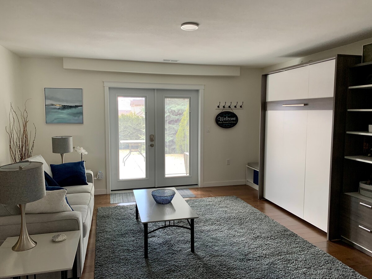 * LEGALMENTE AUTORIZADO POR LA CIUDAD DE KELOWNA - número de licencia indicado * Tu reserva no se cancelará debido a las nuevas legislaciones que entran en vigor en mayo de 2024. Bienvenido a la suite Garden. ¡Este es un lugar de escapada perfecto para el Okanagan! ¡Esta no es la casa de tu abuela! Suite de estilo actualizado y moderno de los años 70: este espacio te llevará de vuelta a algunas épocas. Disfruta de un refrescante chapuzón en la piscina y de una copa fría de algo local en verano. Suite estudio con entrada al jardín privado y baño privado.