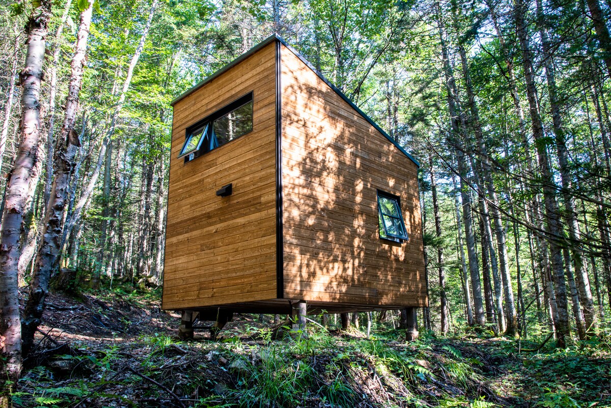 Sur le dessus d’une montagne avec vue, ce magnifique micro chalet vous offre une expérience unique. Marcher, relaxer et profiter de la nature.! BBQ, réchaud au butane, vaisselles, casseroles, literies, eau potable, toilette, éclairage énergie solaire frigo 3.4 p et foyer au gaz . Une destination pour les personnes qui aiment la forêt et monté en montagne, il faut s'y rendre à la marche ou en raquette, 20 à 30 minutes en montagne, selon le rythme, votre matériels et la neige !