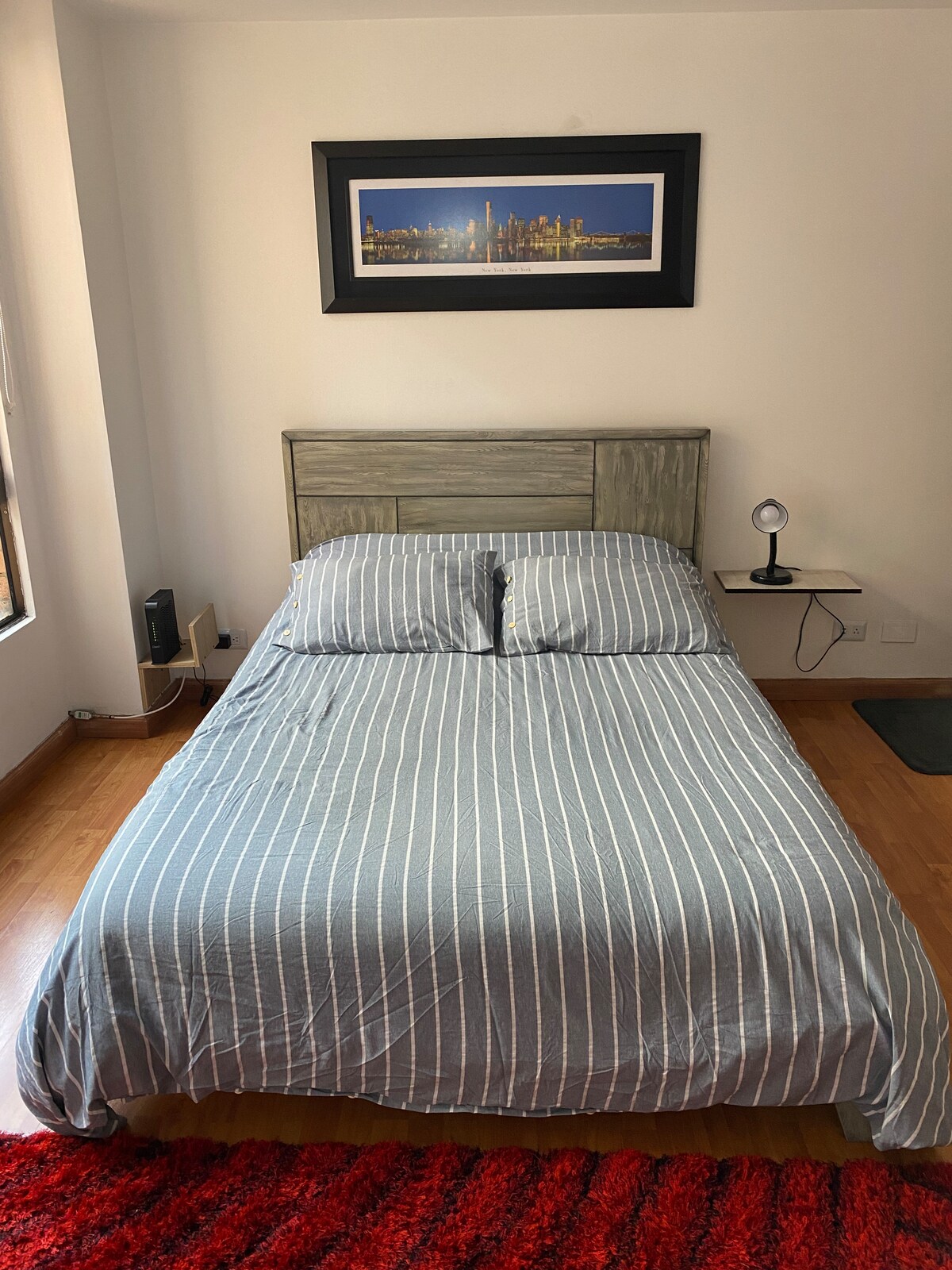 Disfruta de un alojamiento silencioso, 500 MB, en zona tranquila y segura, con ubicación privilegiada a 1 cuadra de la zona G dónde están los mejores restaurantes de la ciudad y a dos cuadras de la zona financiera calle 72, con puerta de seguridad, amenities, cama queen, sofácama, heladera, congelador, horno tostador, cafetera, microondas, vajilla, lavadora-secadora, llamadas locales ilimitadas, televisión por cable, telefonía, extintor y botiquín de primeros auxilios. Limpieza Avanzada.