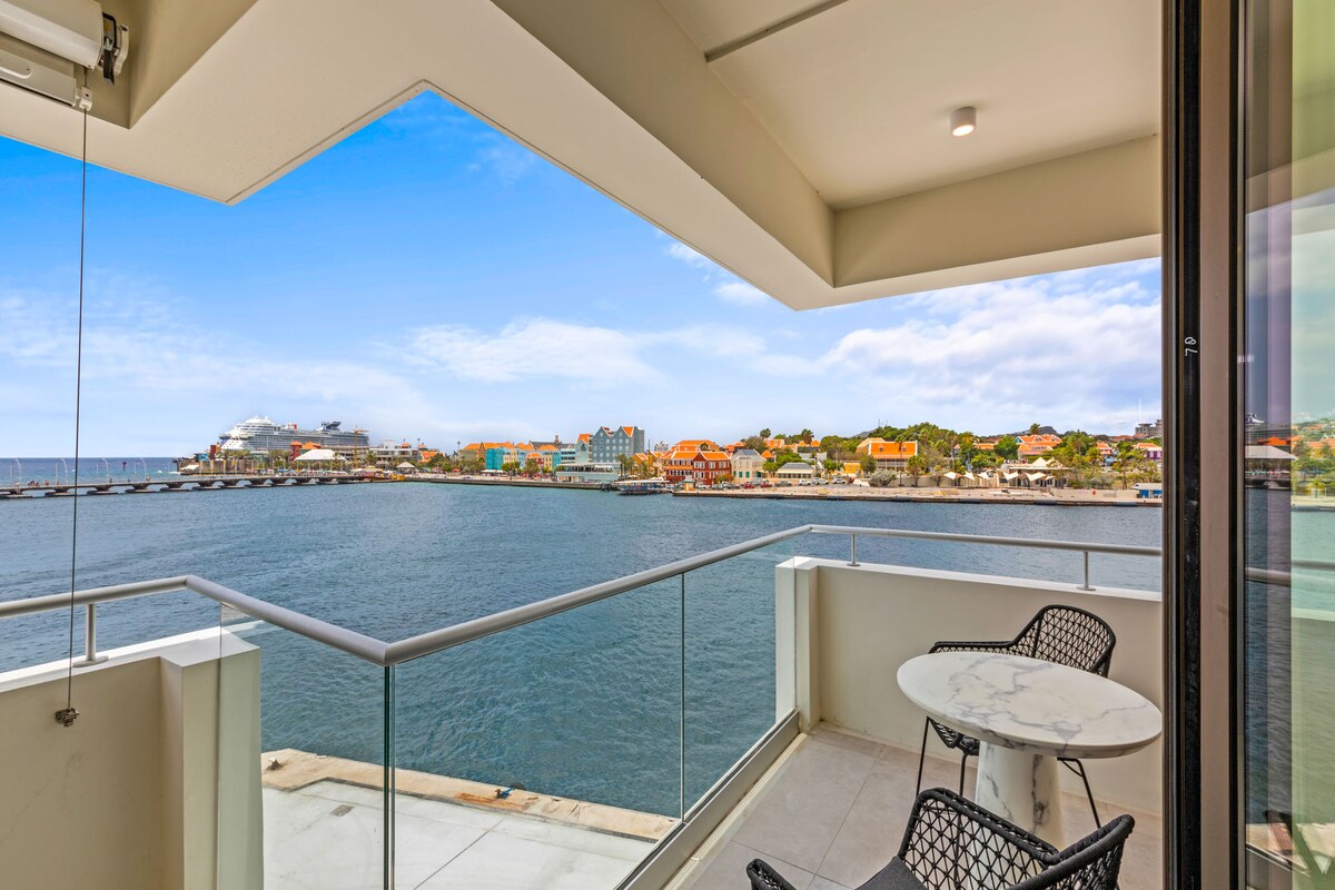 Elegante apartamento nuevo en el corazón de la zona del Patrimonio Mundial de la Unesco Willemstad con vistas panorámicas de Handelskade, Pontjesbrug, Julianabrug, Annabaai y el mar. Complejo seguro con piscina, gimnasio y estacionamiento. El apartamento se encuentra a pocos pasos de restaurantes, tiendas y lugares de interés. Decorada con buen gusto con muebles de lujo, un lugar único para experimentar Curazao. Ideal para una estancia romántica, unas vacaciones familiares o un viaje a la ciudad.