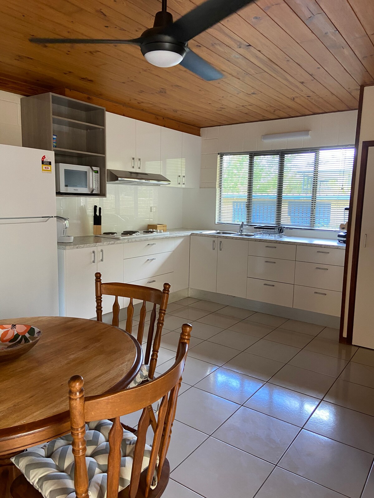 Tu chalet privado Rainbow Beach, donde puedes disfrutar de las vistas desde las copas de los árboles desde cada lado, se encuentra a 450 metros a pie de la playa hasta las banderas patrulladas. Características del chalet: - 1 cama tamaño queen, 2 camas individuales, 1 sofá cama doble. - 1 baño con inodoro separado. - Lavandería con lavadora y secadora. - TEN EN CUENTA: no proporcionamos ropa de cama para sofá cama en esta etapa. - Cocina totalmente equipada. - Aire acondicionado - Wi-Fi incluido. - Estacionamiento disponible fuera de la calle.