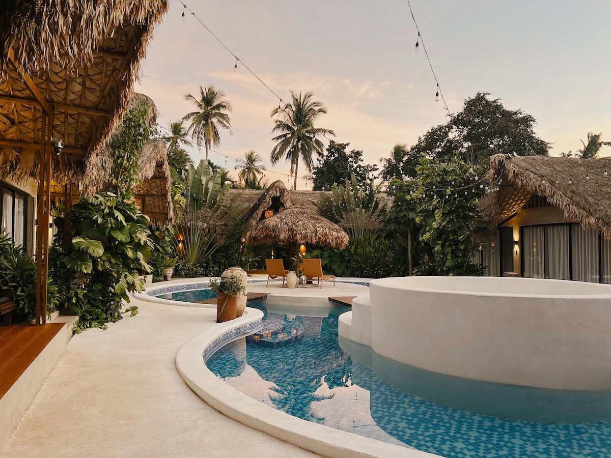 Una villa que consta principalmente de tonos neutros, simplicidad y diseño minimalista que crea una declaración audaz. Este estilo es lo que lo hace "SENCILLA" (simple). Un diseño rústico de hormigón, madera y metal que te lleva a un estado natural de ser minimalista. Situado en la cima de un sitio comercializado en la cima de la colina en Laiya con árboles y vistas al mar que trae la calma y la sensación pacífica que necesitas para recargar la mente, el cuerpo y el alma. El lugar tiene su propia piscina de 4 pies a 6 pies de profundidad.