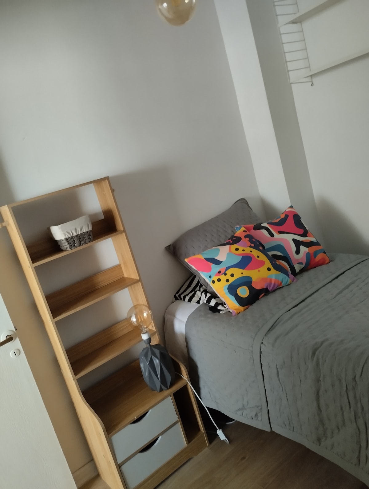 Habitación individual , tiene una ventana pequeña , y es un altillo esto quiere decir que la cama está arriba y abajo tenemos un espacio donde encontrarán un escritorio y un mueble para dejar la ropa Casa multicultural , cocina equipada y estamos muy cerca del centro, dos baños y una pequeña terraza donde llega el sol en la mañana , vivimos en armonía y compañerismo , sean todos bienvenidos a" la casa de los colores "