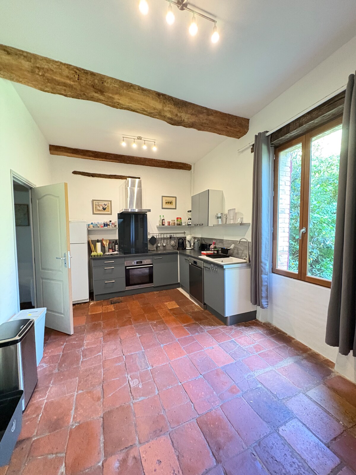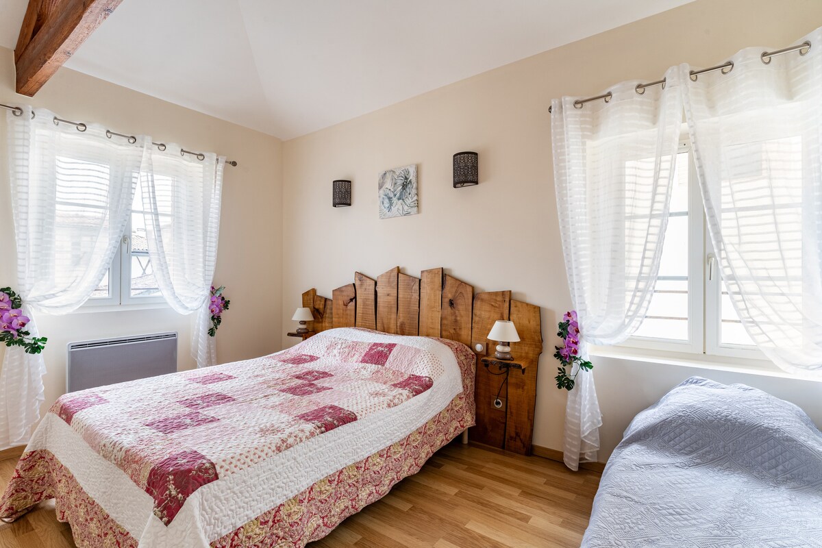 Centro de la ciudad de Rabastens, a 200 metros de la plaza del ayuntamiento y de las tiendas. Casa adosada dividida en 2 alojamientos con jardín y piscina. Le damos la bienvenida a nuestra espaciosa casa de más de 130 m2 con su amplia sala de estar/sala de estar y cocina abierta, sus 3 dormitorios, incluida una suite de unos 30 m2 con bañera de hidromasaje, un escritorio, un baño y un baño. una lavandería con lavadora y una secadora de ropa. Lado exterior: una piscina privada, zona de comedor con barbacoa.