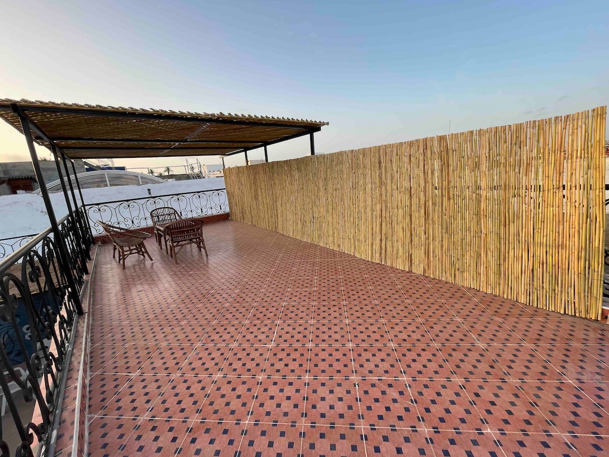 Ubicado cerca de la única carretera principal. El típico bed and breakfast tradicional marroquí. Hermoso patio trasero con piscina iluminada, wifi, muchos árboles frutales, palmeras, un montón de asientos al aire libre. Con vistas a la hermosa laguna. A poca distancia del puerto pesquero. Uno de los lugares de observación de aves más famosos de Marruecos. Perfecto para grupos grandes, hasta 40 personas o más, reuniones familiares, cumpleaños, yoga, mini seminarios, reuniones escolares.