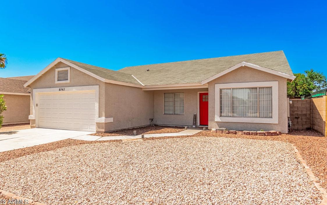 Discover comfort in this fully updated 3-bedroom, 2.5-bath home, nestled in a secure gated community. The home boasts a warm and inviting atmosphere, premium finishes, televisions and the fastest internet. Step outside and enjoy the pool right across the street. This home places you at the heart of the action—less than a mile from State Farm Stadium, the Entertainment District, Desert Diamond Arena and Casino. Whether you're here for a game, a concert, spring training or just a weekend getaway.
