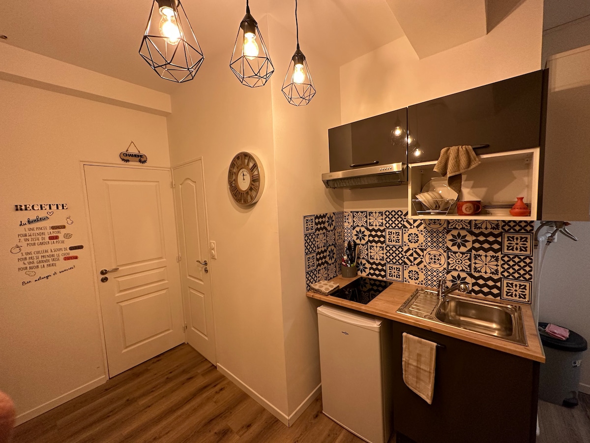 ☕ Café gratis 📺 Netflix gratis 🧳 Llegada autónoma sencilla Deje sus maletas en L'Escale République, un estudio de 17 m² elegante y perfectamente optimizado en el corazón de Valenciennes. Se encuentra en el primer piso sin ascensor (⚠️ tenga en cuenta que la entrada del edificio está en obras, pero es transitable). Situado directamente en la Plaza de la República, disfrutará de una ubicación privilegiada a solo 4 minutos a pie de la estación de tren.