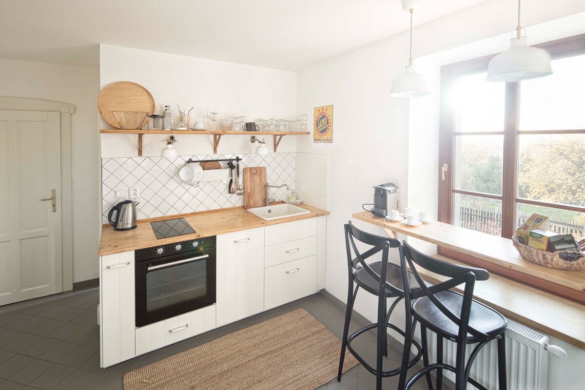 Experimenta la tendencia minimalista con la máxima comodidad en una ubicación perfecta en el centro de Liberec. Esta elegante casa de campo totalmente equipada con 2 dormitorios combina el romance y la tranquilidad de la naturaleza con una increíble vista panorámica de Ještěd, pero al mismo tiempo está a solo unos pasos de las principales atracciones y la vida nocturna de la ciudad.