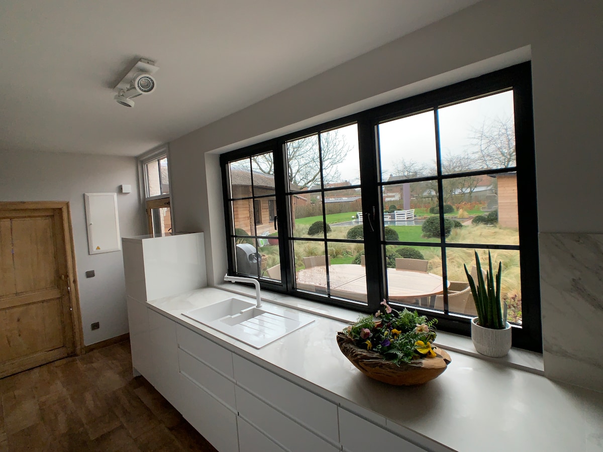 Hermosa casa de campo flamenca original con lujo tropical. Bienvenido a la casa tranquila recién renovada a 20 minutos de Amberes y Lier. Camas tamaño queen, ropa de cama y toallas de primera categoría, cocinas totalmente equipadas, televisores inteligentes, baños grandes, un enorme huerto (cerezos, manzanos y perales) y mucha luz. Una gran escapada de fin de semana y una excelente base de operaciones para estancias más largas de expatriados o de negocios. Comidas caseras disponibles, sauna infrarroja «HealthMate», piscina climatizada (en temporada) y mini gimnasio en las instalaciones.