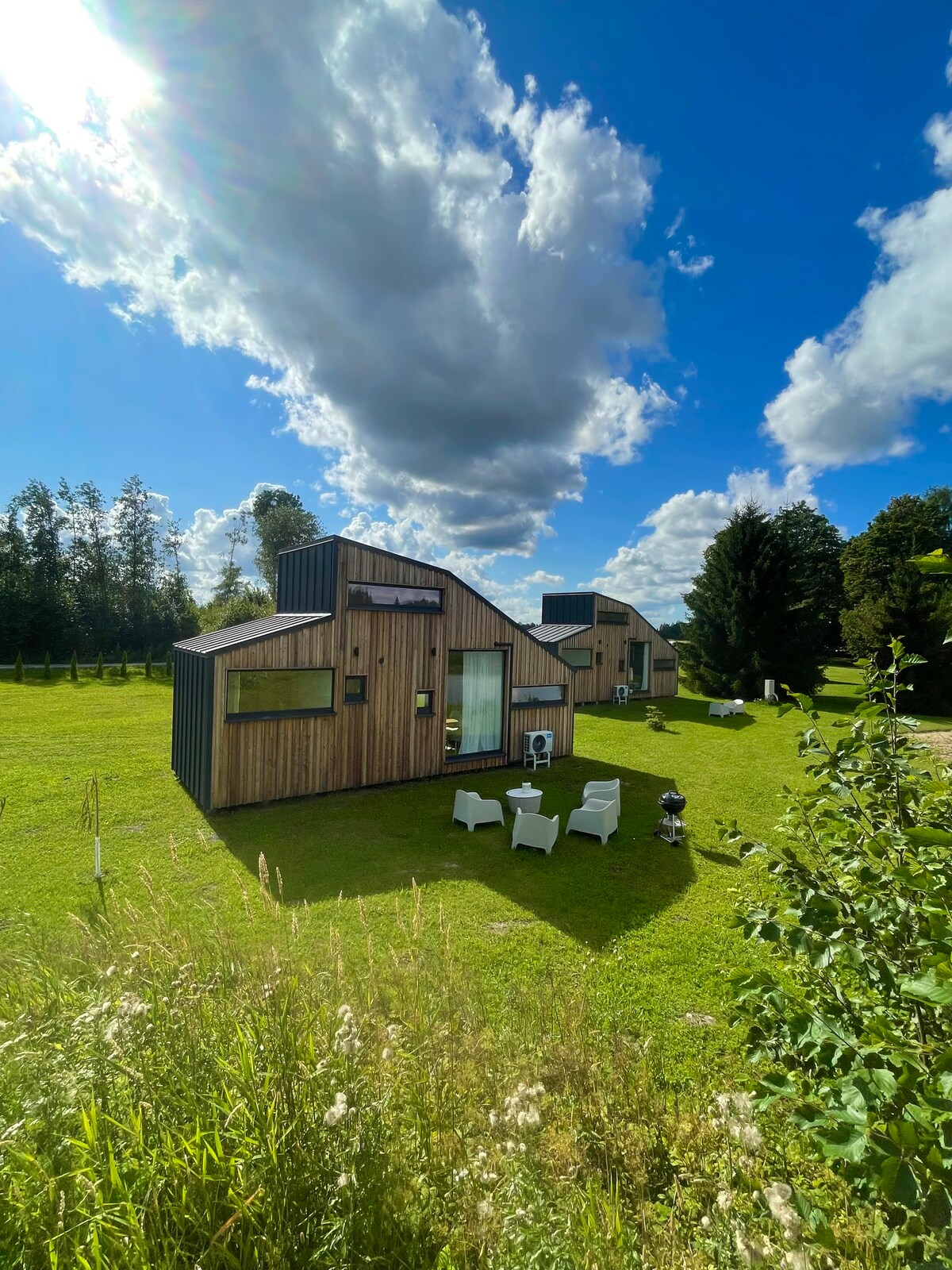 A solo 15 minutos de Tallin hacia Pärnu, la minicasa PAUS te invita a tomar un descanso inolvidable de la vida diaria. Disfruta de una gran ventana corrediza que se abre a una amplia terraza, persianas eléctricas de seguridad, cerradura inteligente, tragaluz, sofá cama personalizado y una acogedora chimenea de vapor. La calefacción por suelo radiante, el aire acondicionado y el televisor Frame (Netflix, Go3, YouTube) garantizan la comodidad. Bañera de hidromasaje al aire libre y jardín con iluminación romántica. A 200 m de deportes: golf, tenis, fútbol, parque de aventuras. A 2 km de la tienda, la gasolinera/cafetería y el lago Kernu.