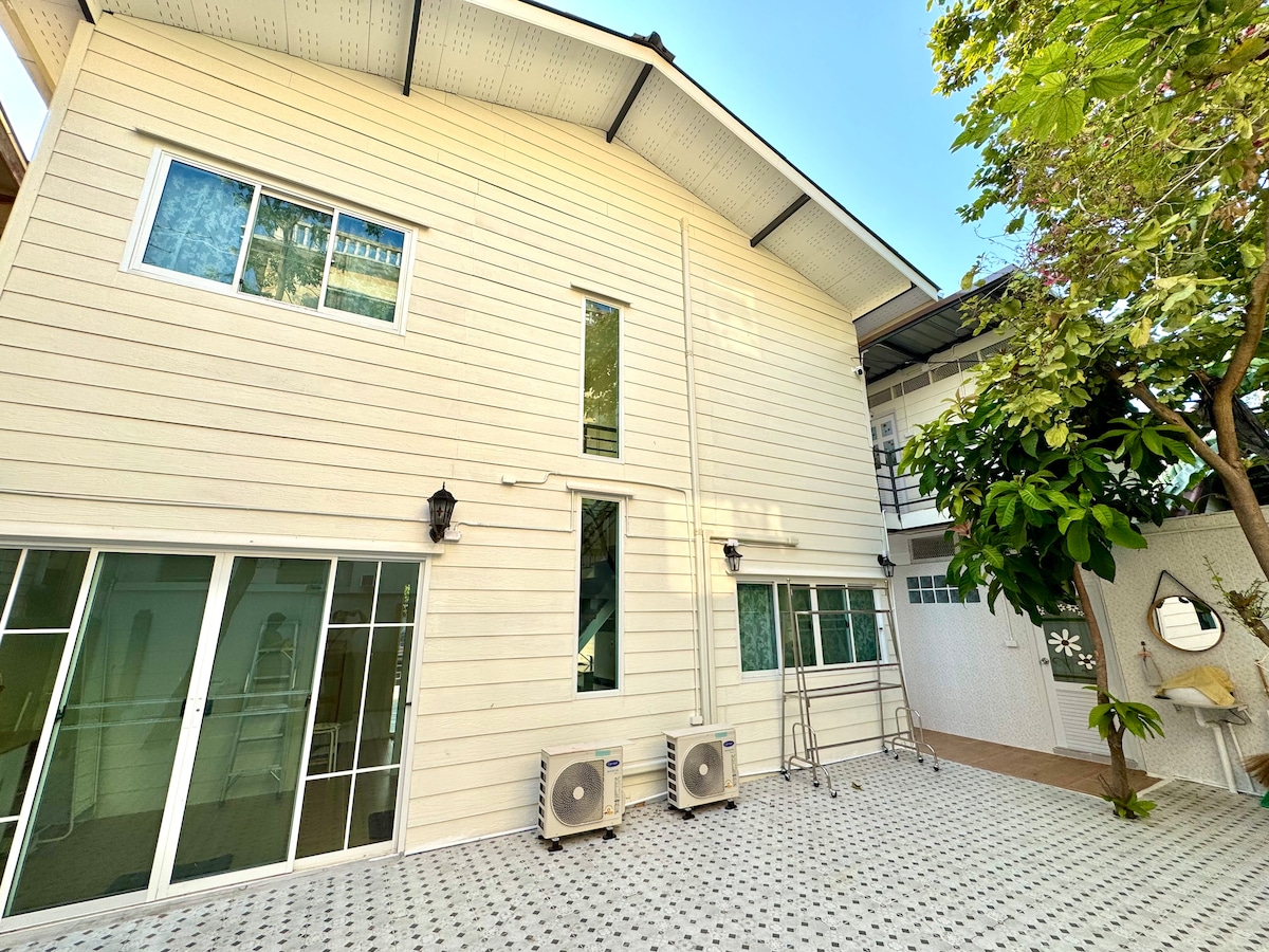Experimenta la auténtica vida de Bangkok en este acogedor y cómodo lugar secreto, tu cálido nido después de un día de exploración. Perfecto para visitar sitios históricos en el casco antiguo en barco. El muelle y el centro comercial Icon Siam están a solo 1 parada, mientras que el centro de la ciudad está a solo 15-20 minutos en BTS. Nuestra casa se llama "Somewhere", ubicada en un pequeño callejón dentro de una comunidad local. A pocos pasos hay un minimercado local, puestos de comida callejera, bares del barrio, cafés de arte y artesanía únicos y restaurantes tailandeses hogareños.