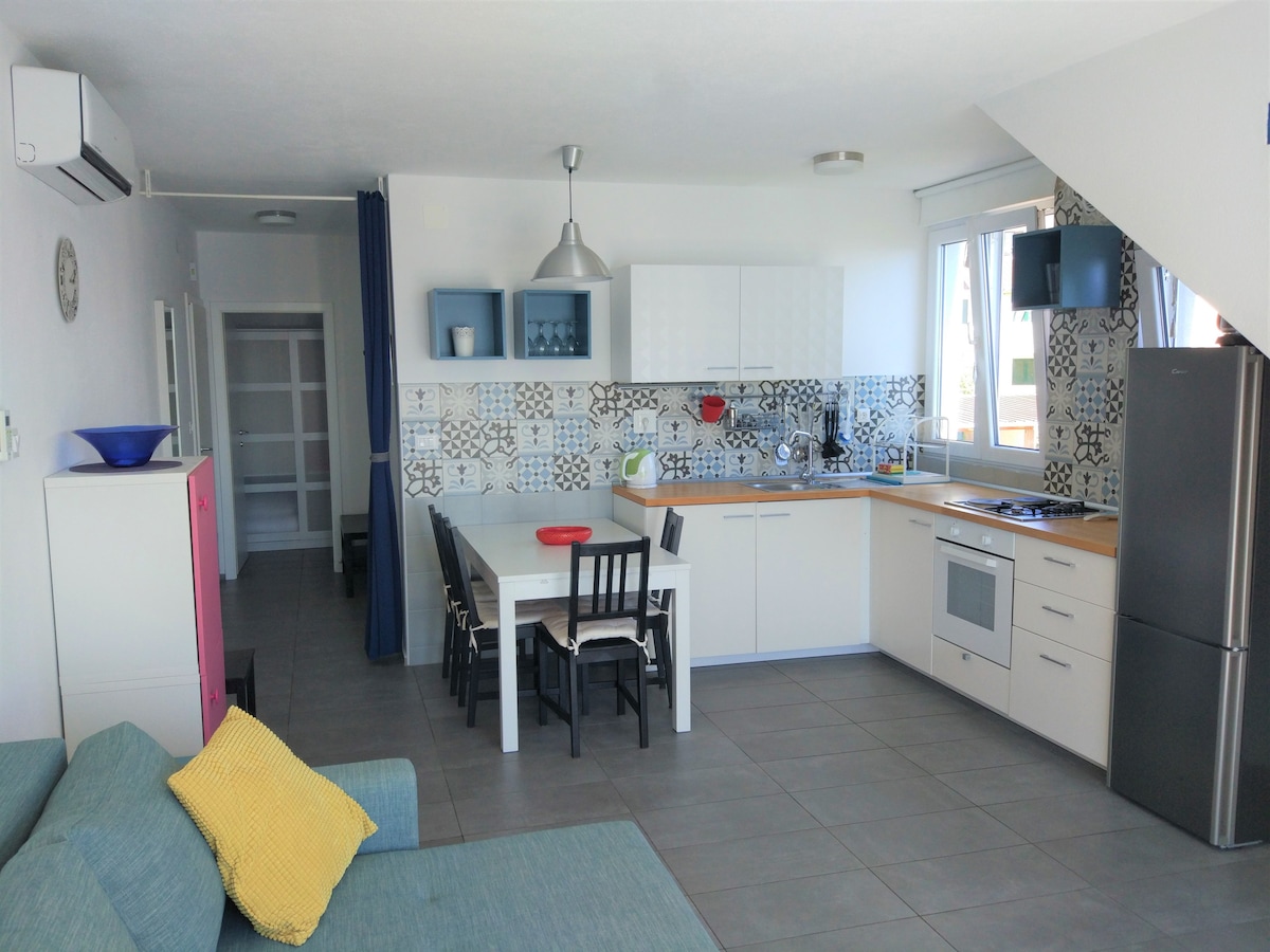 Nuestro apartamento de 45 m2 es ideal para 2 o 3 personas. Puedes disfrutar de una cocina equipada, una sala de estar soleada, un baño funcional y un dormitorio cómodo. Actualmente estamos renovando la cocina y las baldosas del suelo, por lo que este verano (2024) estará a estrenar. Y la mejor parte: terraza con vistas a la bahía, orientada al oeste con hermosas puestas de sol.