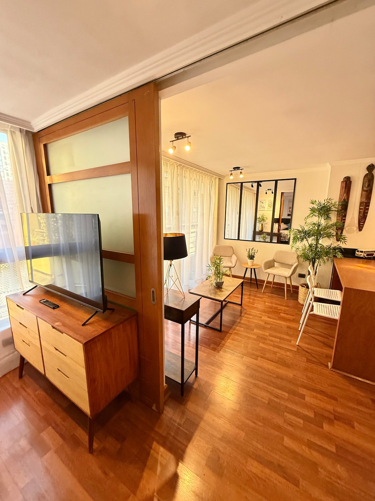 Vive Santiago desde este departamento en Barrio Bellavista, el sector más artístico, bohemio y vibrante de la ciudad. A pasos de Providencia, Cerro San Cristóbal, restaurantes, bares y del Metro Baquedano, que conecta con toda la capital. Desde el balcón privado disfruta una vista única a la Cordillera y al Costanera Center. Con WiFi fibra 850 mb/s, Smart TV, TV cable, parlante y cocina equipada. Perfecto para arriendo temporal o turismo, un alojamiento en Santiago con encanto y estilo.