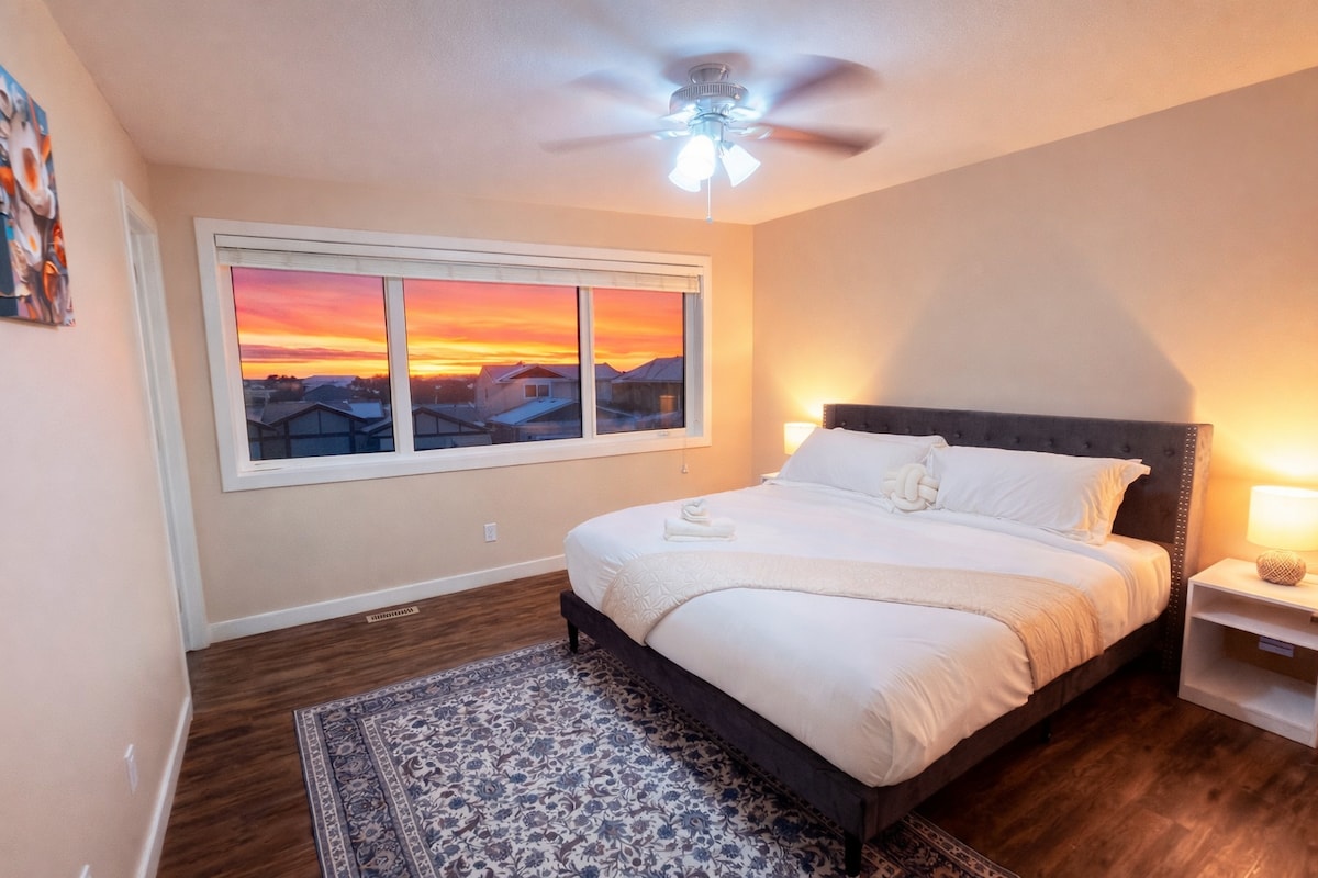 Esta suite de 2 dormitorios en el sótano es ideal para familias o viajeros de negocios. Estancia mínima de 2 noches. Descuentos para estancias prolongadas. Los niños y las mascotas entrenadas son bienvenidos (hay un patio vallado). Algunas comodidades son 2 televisores, wifi, cocina surtida, ropa de cama de hotel y lavandería privada, uso de patio compartido y barbacoa, parque infantil y centro de recreación cerca. Cerca de todos los servicios en un barrio SE deseable de Red Deer. A poca distancia en auto de Westerner Park/Centrium, Canyon Ski Hill. Suite muy limpia.