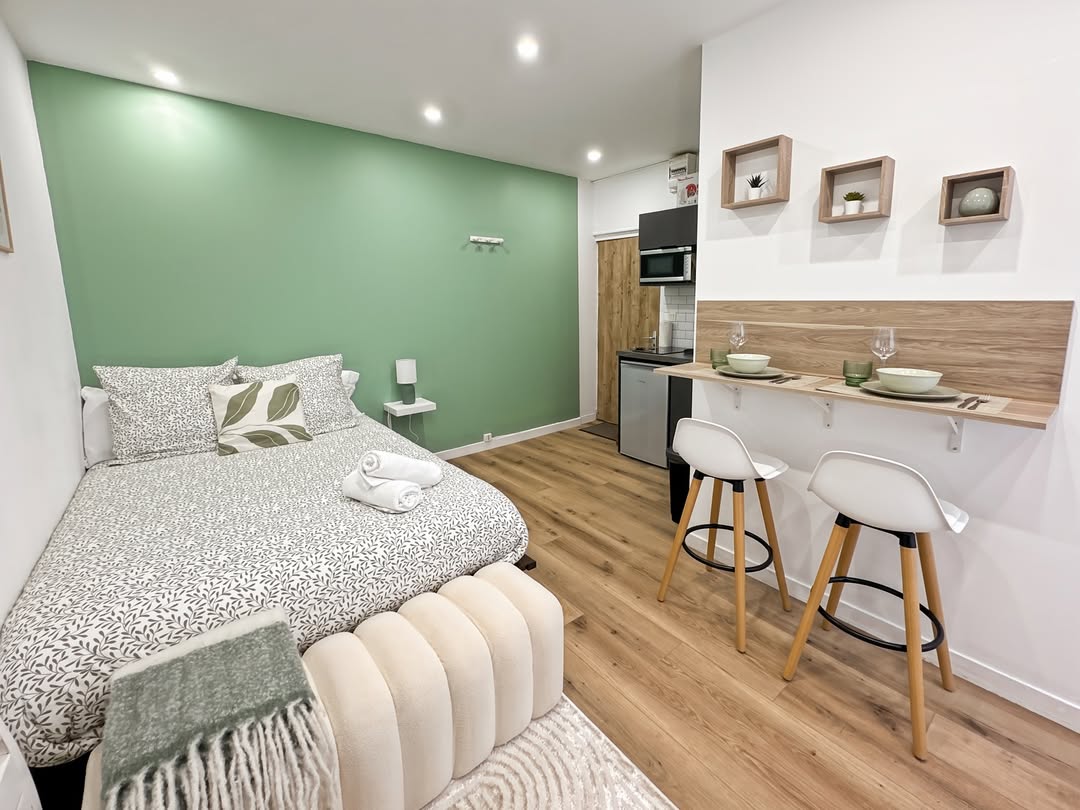 Situado a 6 minutos a pie de la estación de tren (lado sur) en el tranquilo barrio de Sacré Cœur, este estudio de 17 m2 está reformado y ha sido diseñado para usted. La ubicación es ideal: estación de tren, metro, autobús: todo es posible. Todas las comodidades están cerca (supermercado, cines... ) ¡Fácil para conocer la ciudad o incluso escapar fuera! Este estudio está equipado para 2 personas con 1 habitación principal con un sofá cama (colchón real de 140X190), 1 cocina, un baño y un aseo, un armario
