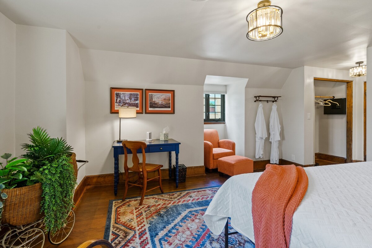 Relájate en esta acogedora habitación con baño privado con ducha a solo unos pasos por el pasillo. Estírate en uno de los dos nuevos colchones individuales XL Saatva envueltos en lujosas sábanas de mezcla de bambú con cómodas almohadas de plumón sintético. Envuélvete en una cómoda bata después de secarte con una toalla caliente al alcance de la ducha. Por la mañana, despierta con un desayuno caliente a la carta con magdalenas recién salidas del horno.