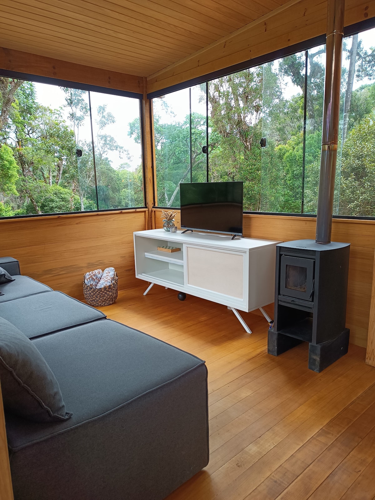 Un alojamiento diseñado y construido con manos y corazones. Las ventanas de vidrio de Amplas proporcionan una integración total con la naturaleza. Además de un bosque privado con parrilla, hamacas, fogata y una terraza con jacuzzi, el alojamiento cuenta con sala de estar, cocina, baño con pared de vidrio, cama doble y espacio zen, televisión inteligente con Netflix y YouTube. ¡Simplemente perfecto! Más que un hogar, alojarse en Vibe es una experiencia difícil de explicar, pero muy fácil de sentir.