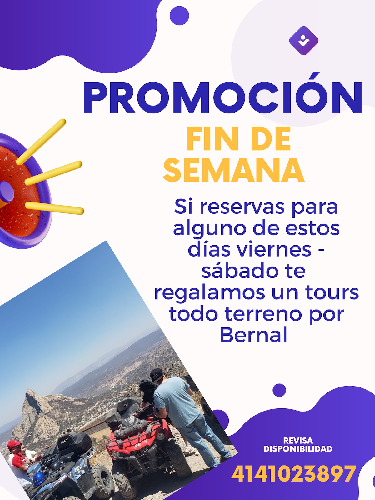 Visita o escala el 3r monolito más grande del mundo con tan solo cruzar la calle, recorre las tienditas, museos, restaurantes… y visita el centro aprox. 500mts (nos encontramos en la parte más alta de Bernal) y si te gusta disfrutar la naturaleza, disfruta la experiencia 100% al natural en ATV o RZR. Y por la noche la iluminación de la Peña, sus fuentes danzarinas y sus leyendas.