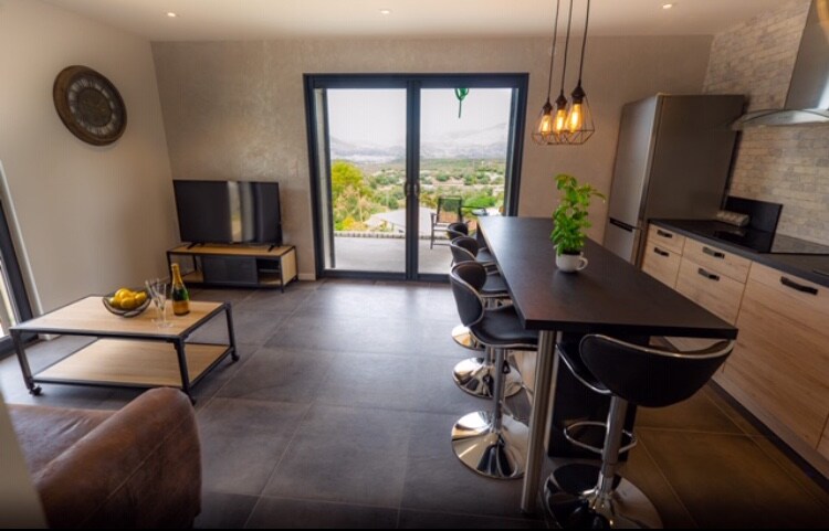 Parte baja de villa baja de 50 metros cuadrados: - Cocina equipada (horno, placas de inducción, microondas, cafetera) - Sala de estar con un sofá cama - Amplio dormitorio equipado con cama de matrimonio, gran armario, televisión, zona de oficina y baño. Este alojamiento está situado a 10 minutos de las playas de Porticcio y a 10 minutos del centro de la ciudad.