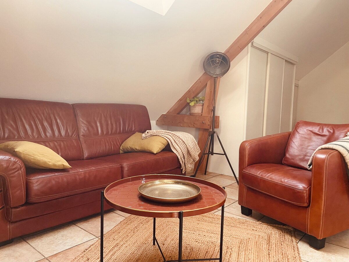Apartamento acogedor, agradable: una decoración y un ambiente acogedor en el corazón del centro de la ciudad de Vitré, a 2 pasos del castillo, cerca de la estación de tren y las tiendas. Ya sea por trabajo o para hacer turismo, ¿nuestro principal objetivo? Que se sienta como en casa en nuestro alojamiento completamente nuevo. Pequeña aclaración: Para que todo salga bien, los intercambios, la información y las instrucciones se realizan solo a través de la mensajería de Airbnb. Mi teléfono está reservado para emergencias relacionadas con la estancia.