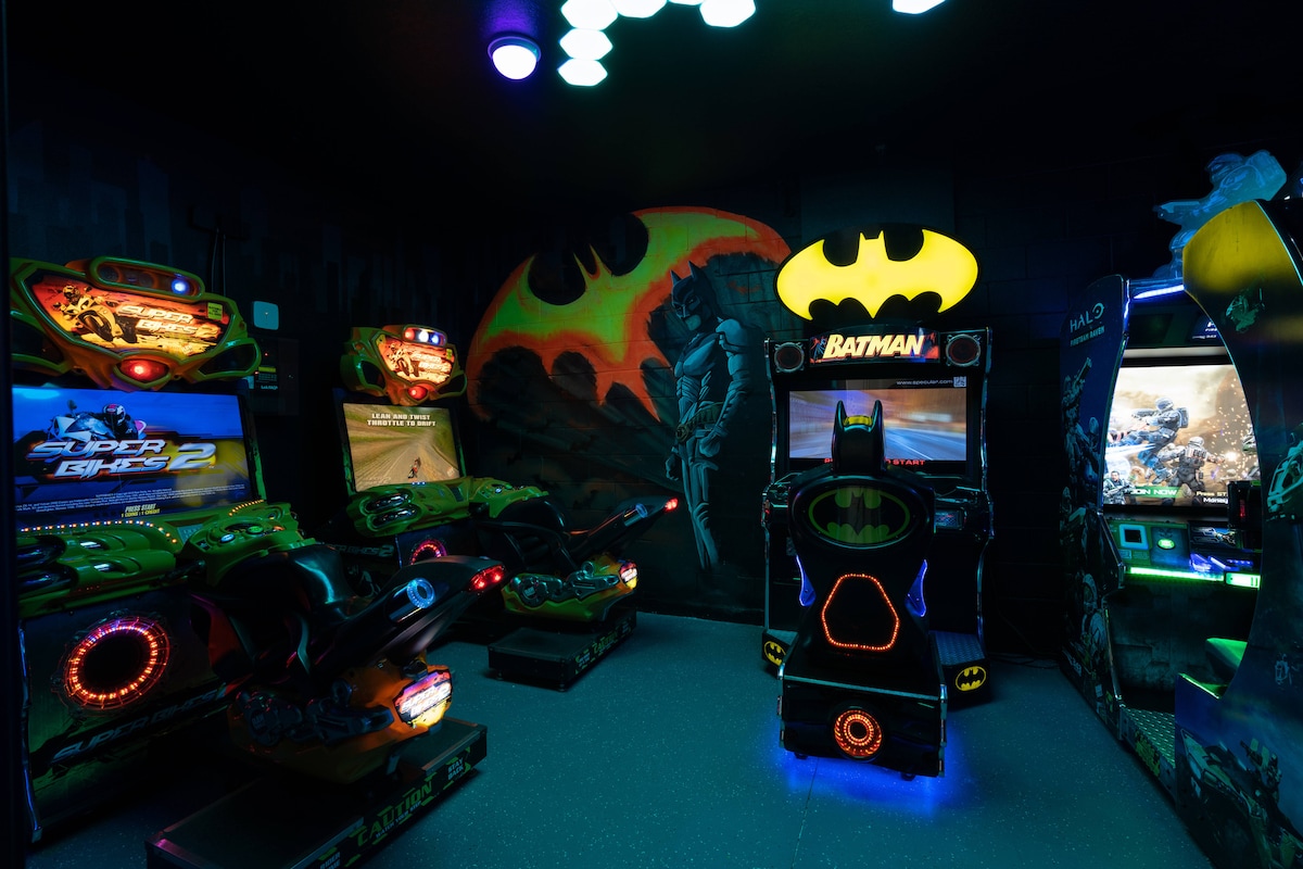 Gran y hermosa villa de vacaciones temática en Encore Resort cerrado de primera calidad. Amplio piso principal para entretener a grupos grandes: ¡trae a los familiares y amigos! Disfruta de los servicios incluidos del centro vacacional a un minuto a pie de la puerta de entrada. O relájate alrededor de tu piscina privada y cocina personalizada de verano. ¡Disfruta de películas y sonido en la pantalla grande en el cine en tumbonas premium y juega juegos clásicos de arcade! min de Disney, uno de los resorts de villas más cercanos. ¡Toneladas de tiendas y restaurantes cerca!