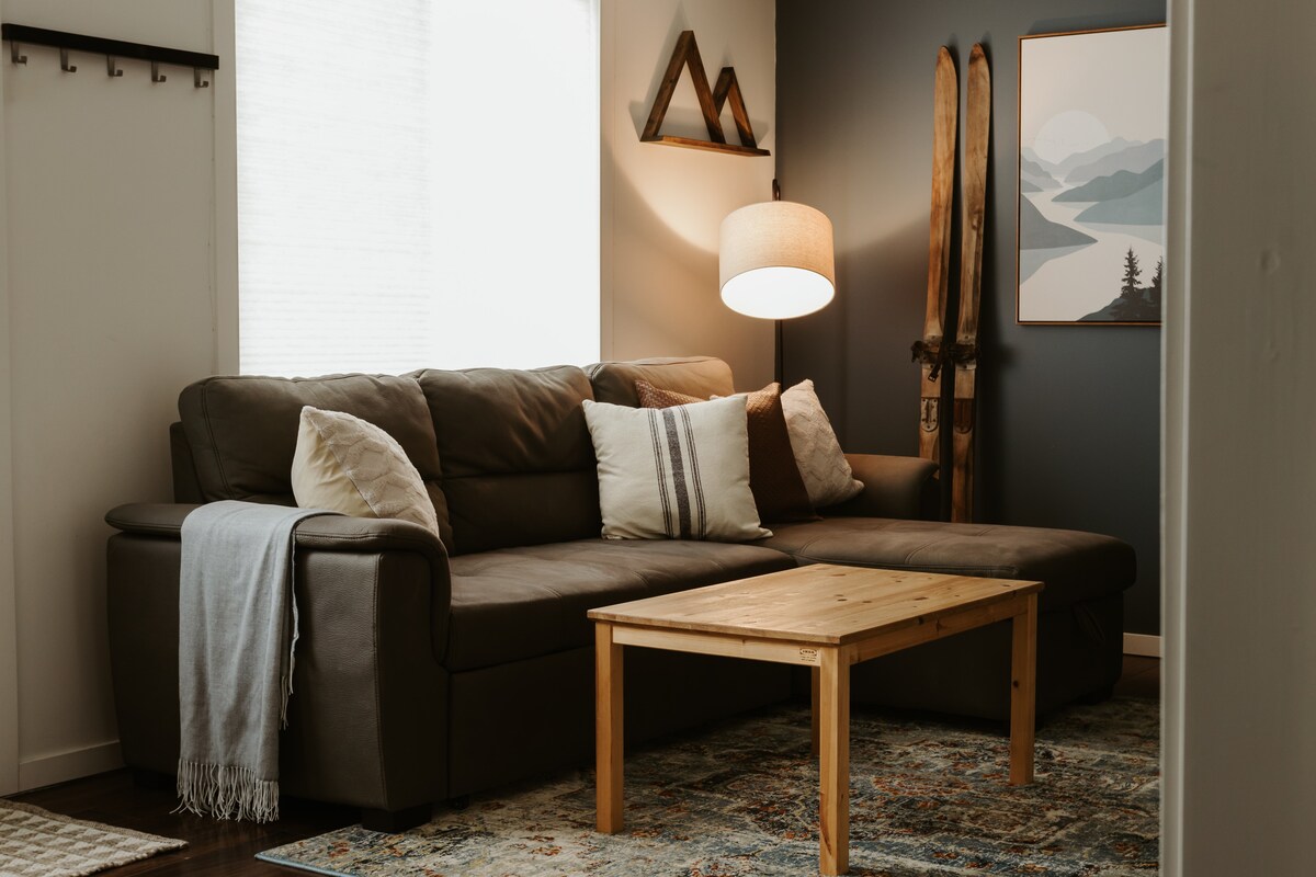 Disfruta de Revelstoke con nuestra suite de dos dormitorios con vistas a la montaña. Con una superficie de más de 800 pies cuadrados, es perfecta para un máximo de 6 huéspedes. Cada dormitorio tiene una lujosa cama tamaño queen con sábanas de primera calidad, y la sala de estar incluye un sofá cama tamaño queen de espuma viscoelástica. Disfruta de una cocina totalmente equipada, wifi de alta velocidad, TV por cable, lavandería privada y aparcamiento incluido. Ideal para familias o grupos, esta suite garantiza comodidad y conveniencia durante tu estancia.