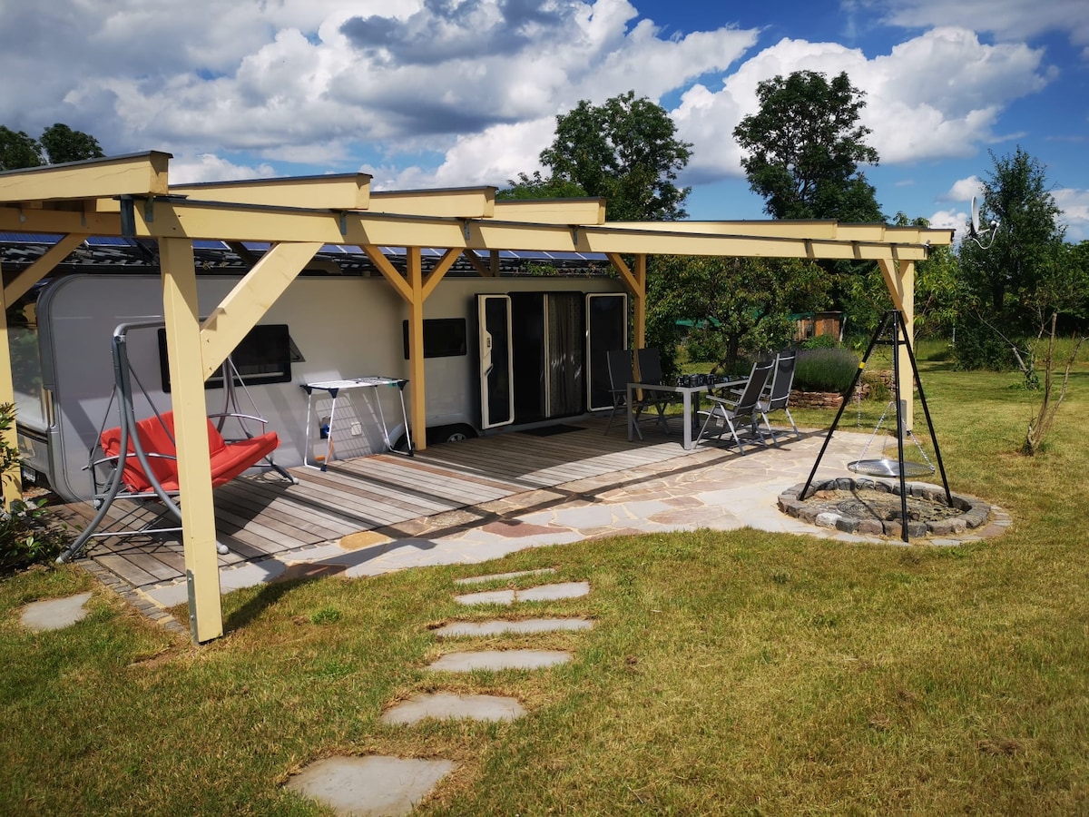 Aquí puedes hospedarte en una ubicación excepcional. Usted tiene la posibilidad de barbacoa, o en la pequeña terraza para desayunar. La sensación de libertad y aventura, algo muy especial. Bajo petición también puede tener una lección de yoga de un tipo especial, como una caminata de yoga en nuestra hermosa naturaleza. Mi esposa es profesora de yoga.