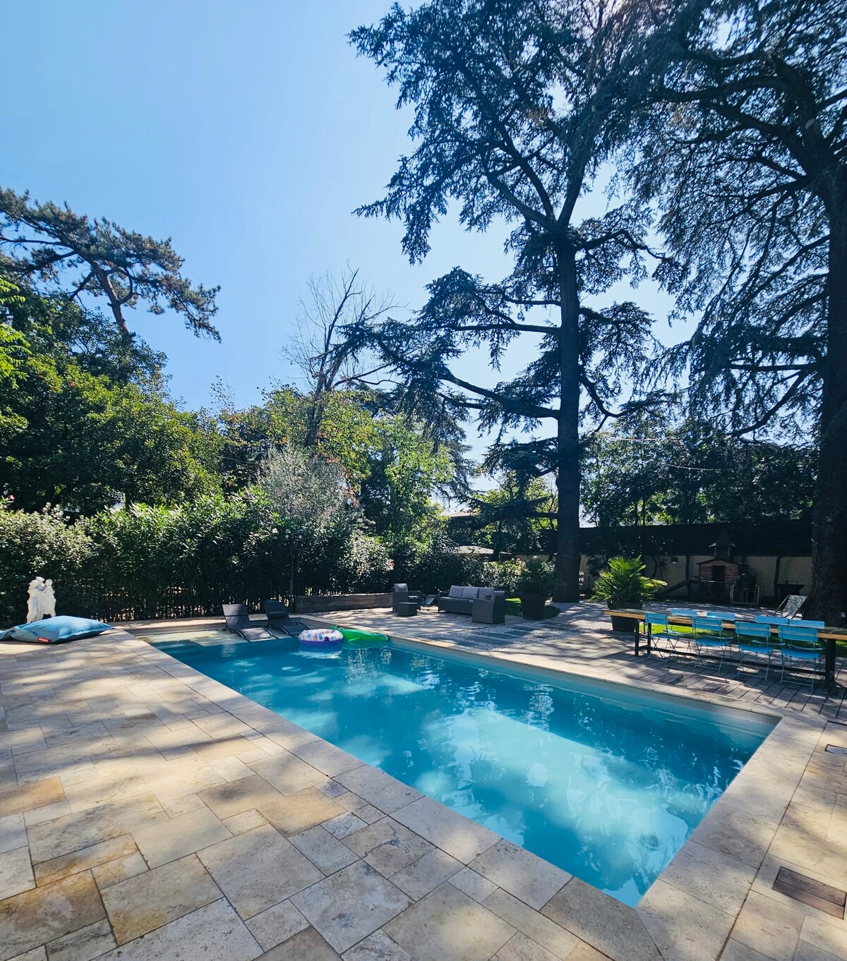 Discover the charm and conviviality combined with modern comfort at Château GrandClément, a hidden treasure. Designed to accommodate up to 9 guests, the Jacobins apartment offers space and comfort. Perfect for families, ideal for friends, and excellent for business stays. All this within an exceptional setting that blends tranquility, comfort, and quick access to the heart of Lyon. Beautiful architecture Heated pool Lovely outdoor space Lush green park Our Château is truly one of a kind…