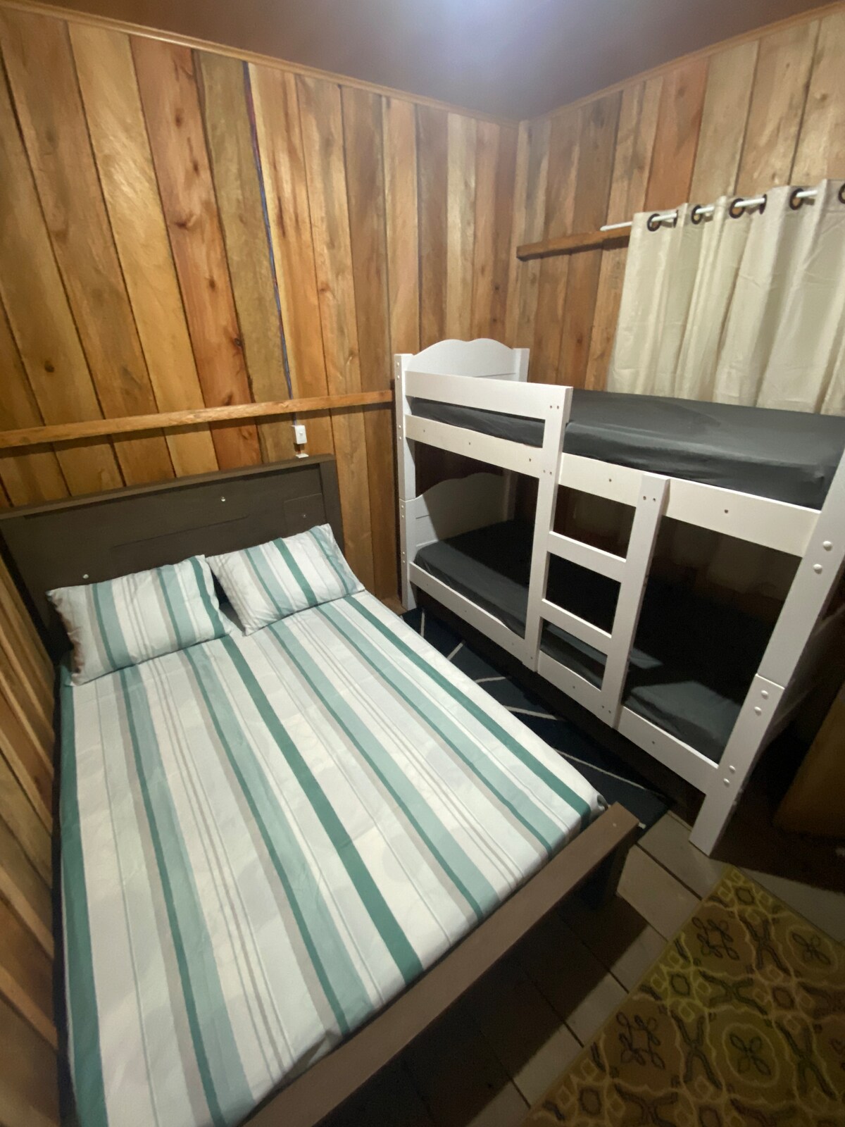 Relájate en este espacio tranquilo, elegante y con estilo. Hay 02 habitaciones, una con una vista abierta del bosque, ambas con camas tamaño queen, ventiladores y un televisor. Nuestra cocina está completa y equipada para la mayor comodidad y conveniencia. Excelente ubicación, cerca del centro del barrio, supermercado y restaurante Nuestro espacio está rodeado de árboles y aves, entorno rústico y lleno de detalles, para aquellos que buscan un contacto real con la naturaleza.