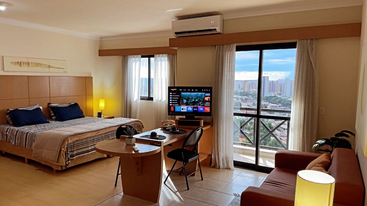 ✨ Alójate en el corazón de Ribeirão Preto con todas las comodidades de un apartamento moderno dentro del famoso Hotel Araucária Plaza. Ideal para viajes de negocios, médicos en congresos, pacientes en tratamiento y también para aquellos que buscan comodidad en estancias cortas o de media duración.