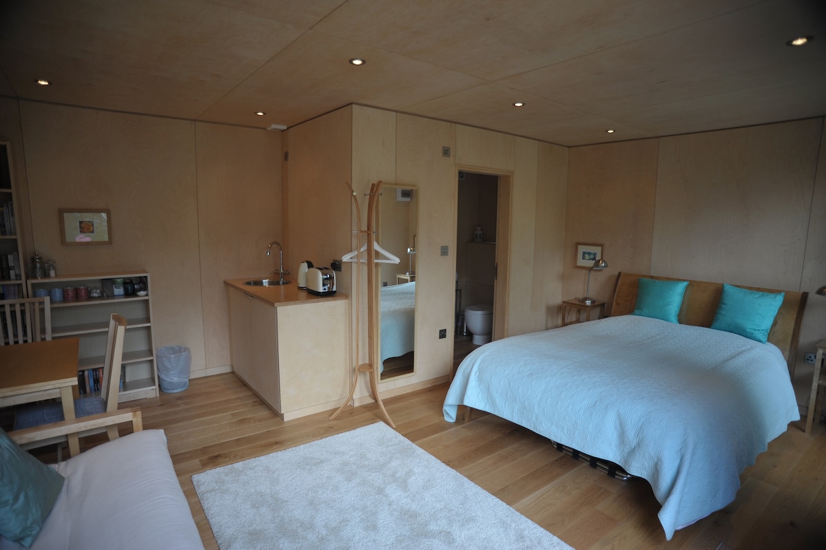 Amplio estudio (antiguo estudio fotográfico) convertido en un tranquilo y amplio apartamento tipo estudio independiente de un dormitorio con techos altos y acceso a nuestro jardín. Junto a Richmond Park, Richmond on Thames, East Sheen, cerca de Barnes y Putney, ¡nuestra propia puerta directa al parque! Dos excelentes pubs/restaurantes cerca, supermercados a 10 minutos a pie. A 25 minutos en tren del centro de Londres desde la estación de Mortlake, a unos 15-20 minutos a pie, los autobuses a Richmond están a 6 minutos a pie y tardan unos 8 minutos en llegar al centro de la ciudad.