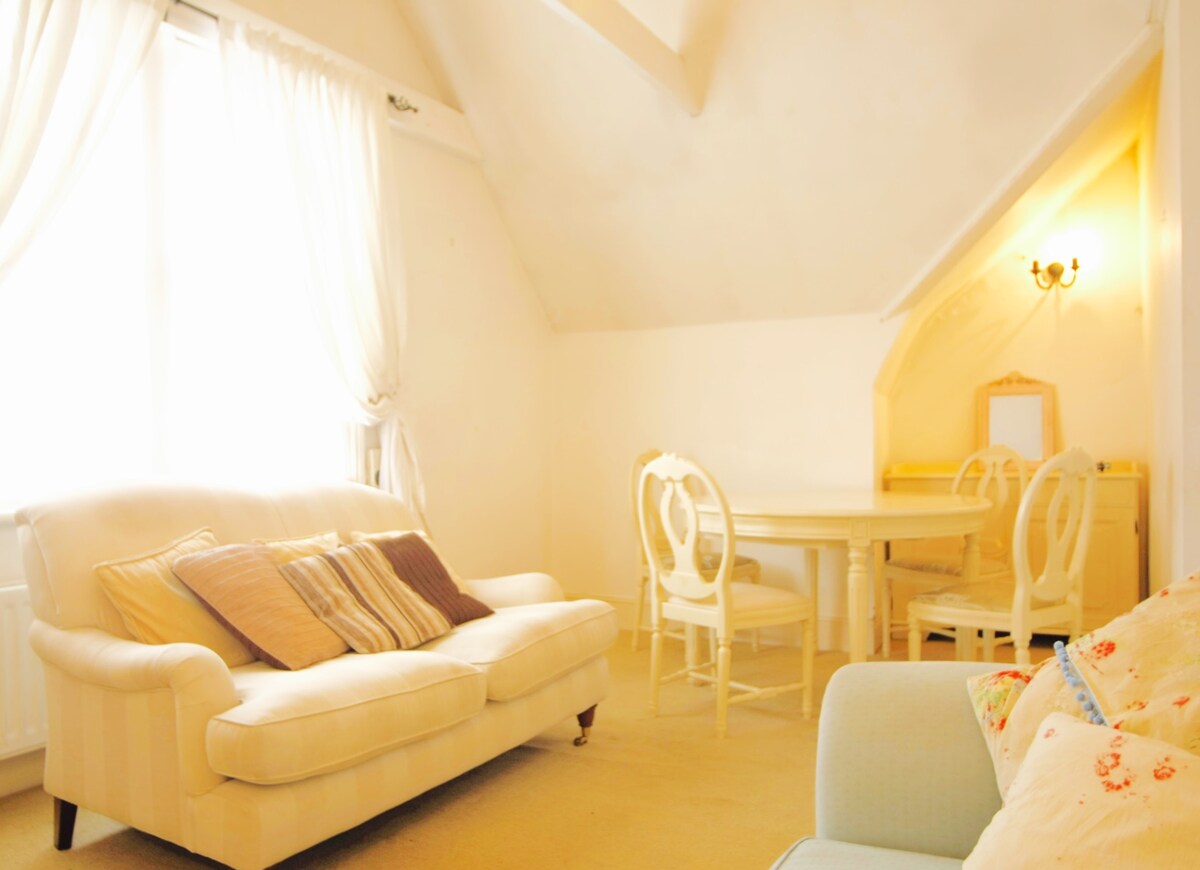 Grande, artístico, peculiar 2 dormitorios 2-6 huéspedes (habitación para 12 huéspedes en el sitio - envíanos un mensaje) Perfecto para fines de semana, estancias largas y trabajo remoto. Cocina completa, lavadora/secadora, carga EV, estacionamiento gratuito, apto para perros -2 máx. Más de 25 restaurantes. Tiendas divertidas: antigüedades, ropa, arte, regalos, flores y edredones. Camina hasta Henry VIII Hampton Court Palace & Flower Show, los barcos fluviales del Támesis y los Parkruns de Bushy Park. Camina hasta los trenes y autobuses de Londres a Twickenham y Richmond (hogar de Ted Lasso y LondonAtelierByproducts: ¡regalos y moda femenina!
