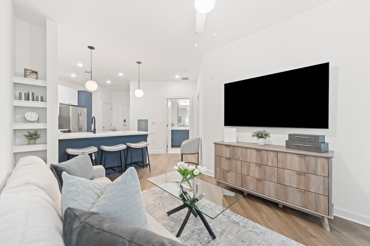 This luxury apartment is perfect for traveling nurses, professionals, solo travelers, or couples. The fully equipped kitchen features an air fryer, crockpot, coffee bar, and Bartesian machine to make you feel at home. The apartment complex offers amazing amenities, including a Rooftop Terrace , two courtyards, a pool, yoga room, on-site fitness center, and a modern co-working space. Step into this fully furnished, upscale space, where every detail has been designed with your comfort in mind.