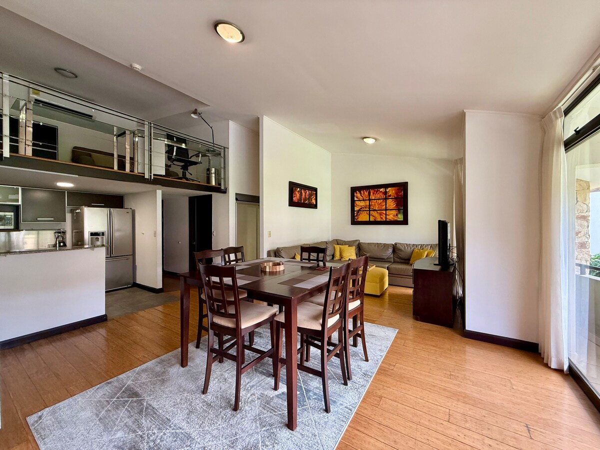 Amplio penthouse de 2 dormitorios y 2 baños en Avalon Country Club, Santa Ana. 110 m2, tamaño doble que otros penthouses. Cuenta con una oficina en la entreplanta con 2 escritorios y aire acondicionado, cocina totalmente equipada, 2 balcones y acceso al ascensor. Cada dormitorio tiene aire acondicionado. Disfruta de la piscina con vistas, gimnasio, espacio de coworking, canchas de tenis, parque infantil y restaurante. Con vistas al lago y a las montañas, este elegante refugio ofrece comodidad y conveniencia. Comunidad cerrada con seguridad 24/7.