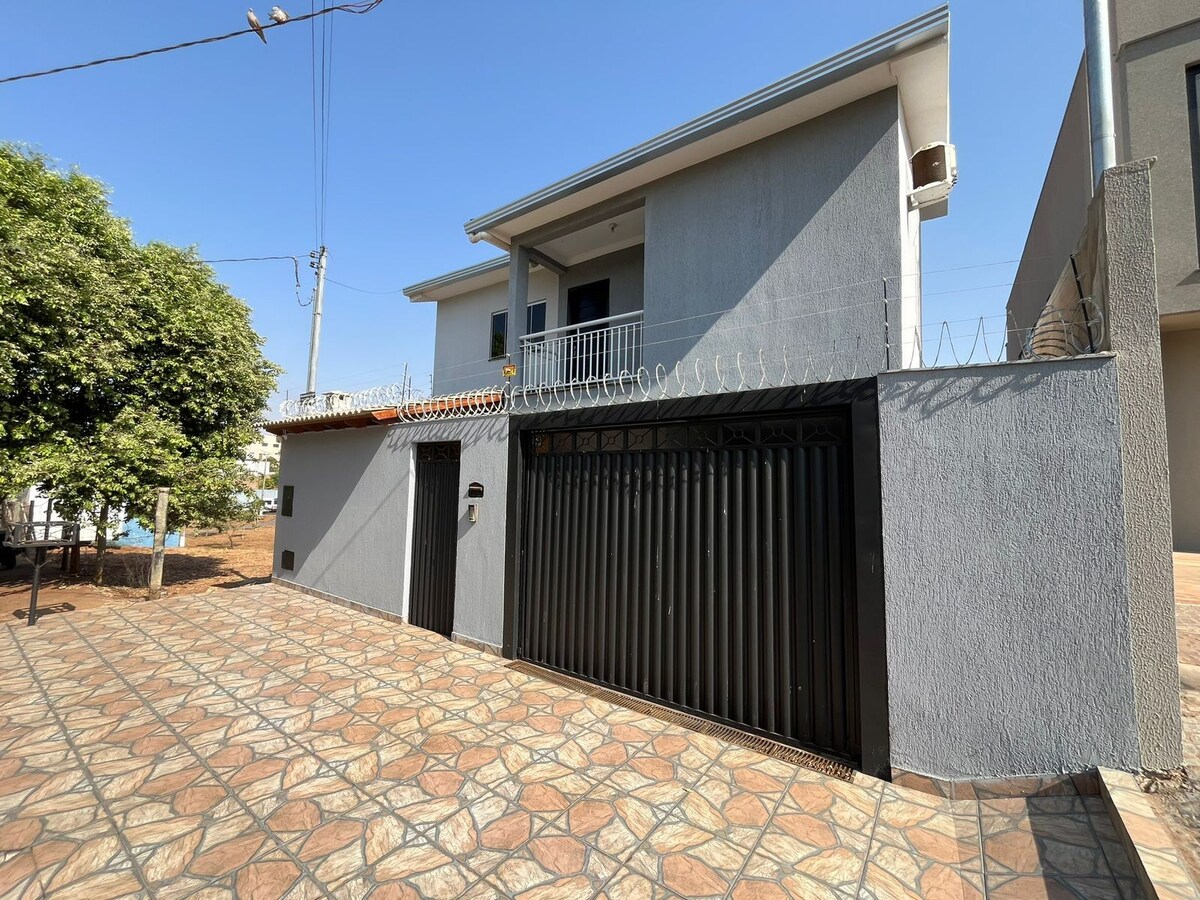 Casa ubicada a 5 minutos del ganado y a 200 metros del anillo de carretera - SALIDA A GOIÂNIA , TECNOSHOW Y MONTIVIDIU. Habitación 1 cama doble, televisión y aire acondicionado. Habitación 2 cama doble, litera y aire acondicionado. Habitación con sofá cama para 02 personas y aire acondicionado y TV de 75pulgadas ¡Garaje para 02 autos con enchufe 20a para autos eléctricos!