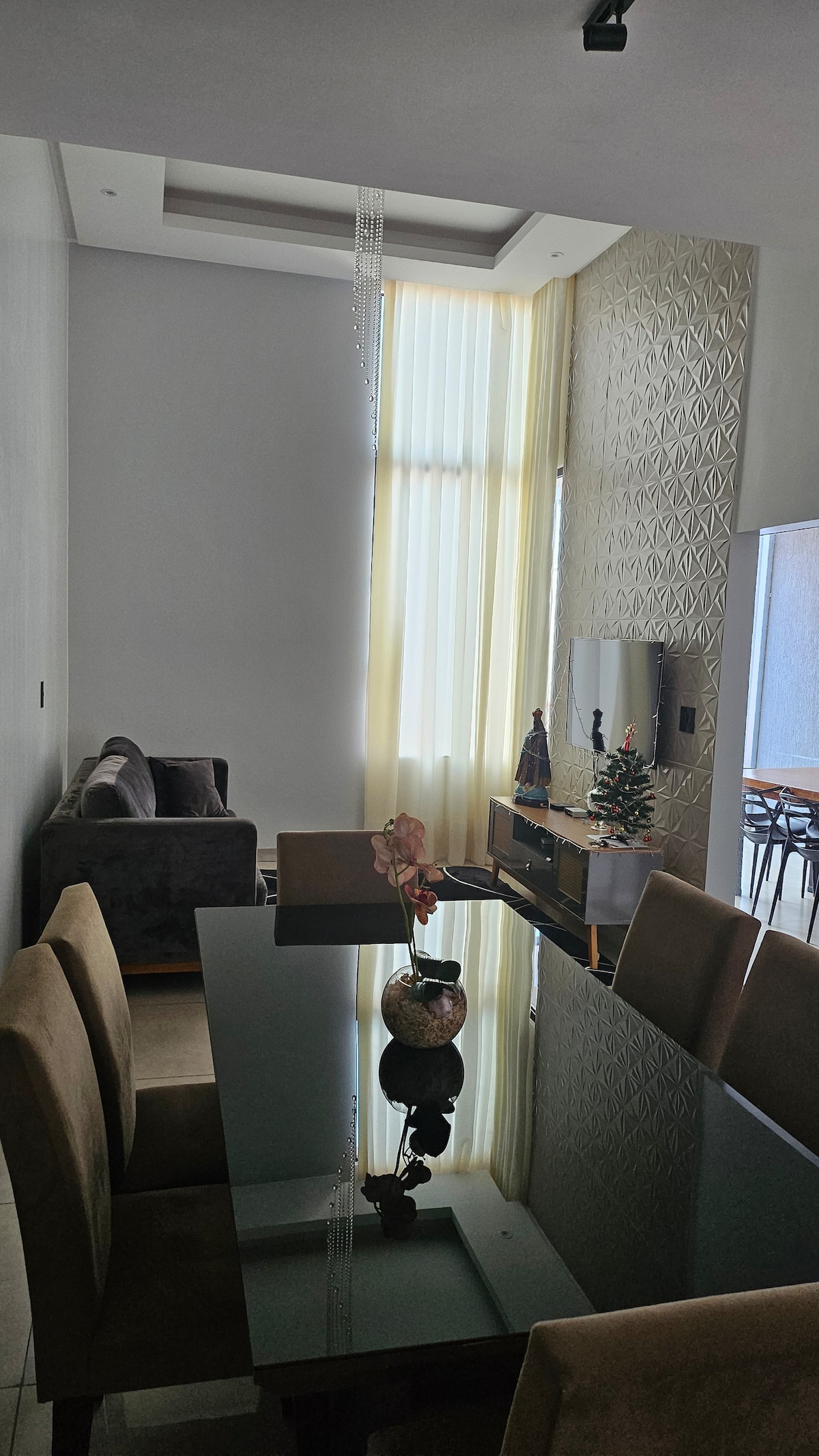 Amplia casa, que contiene 3 dormitorios con 1 suite con aire acondicionado, sala de estar, cocina, baño social, área de servicio, garaje para 3 autos cubiertos, TV 55 con Netflix y Amazon, ducha para bañera. Cerca del centro comercial Buriti, el ataque y los supermercados Assai, cerca del hospital Santa Terezinha (consulta para más huéspedes).